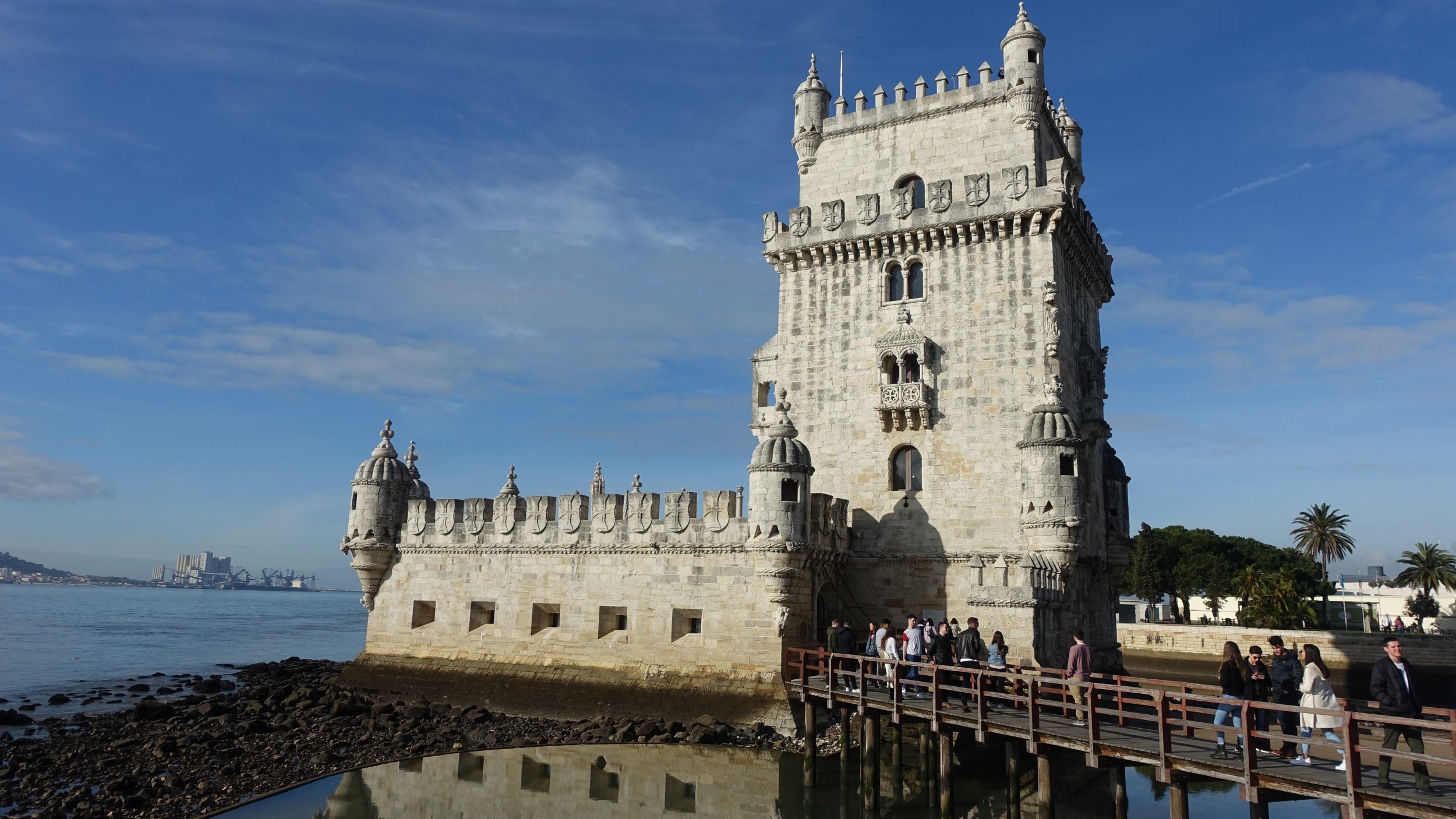 Ponieważ jest to po drodze, zatrzymujemy się przy wieży Belem, która kiedyś kontrolowała dostęp do portu w Lizbonie. Ta wieża nie jest zbyt duża, ale jest piękna, a widok na most 25 kwietnia po lewej stronie jest wspaniały.