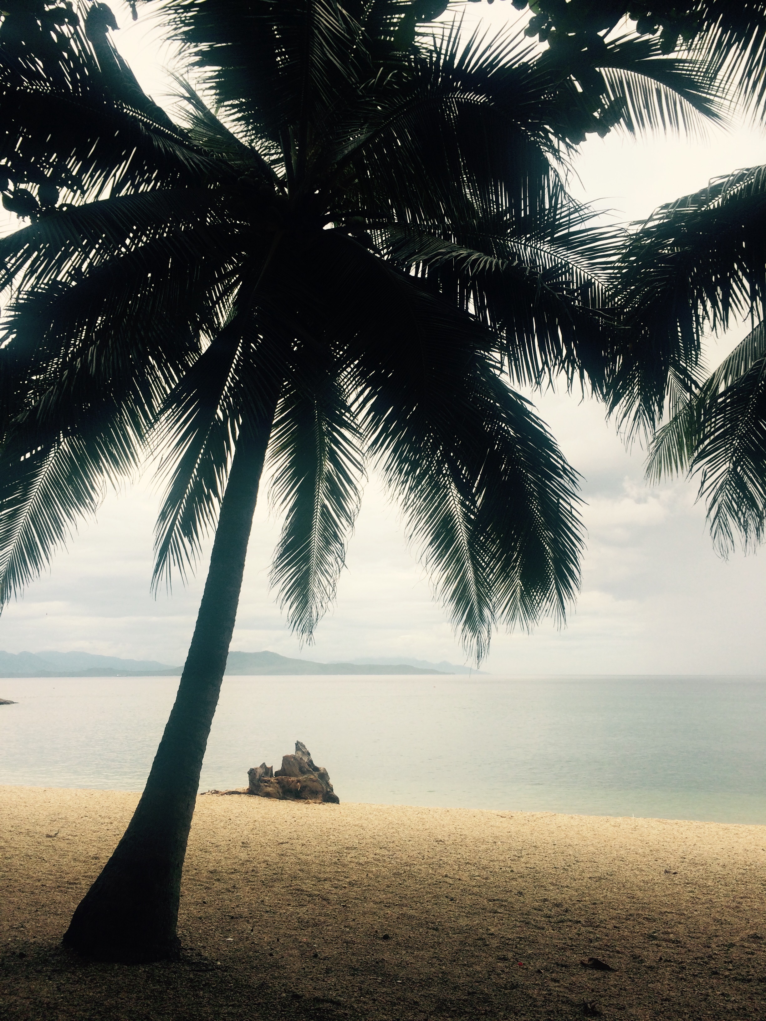 Aninuan Beach, prywatna plaża bardzo dobrze znana Filipińczykom, za wstęp na nią płacimy 10 pesos od osoby (0,2€). Piasek jest pełen kamyczków, ale nie rani stóp. Właściciele mają dużo zwierząt: kury, kaczki, psy, małpę. Wszystkie są urocze. Nie lubię robić pocztówkowych zdjęć, ale plaża jest naprawdę pocztówkowa.