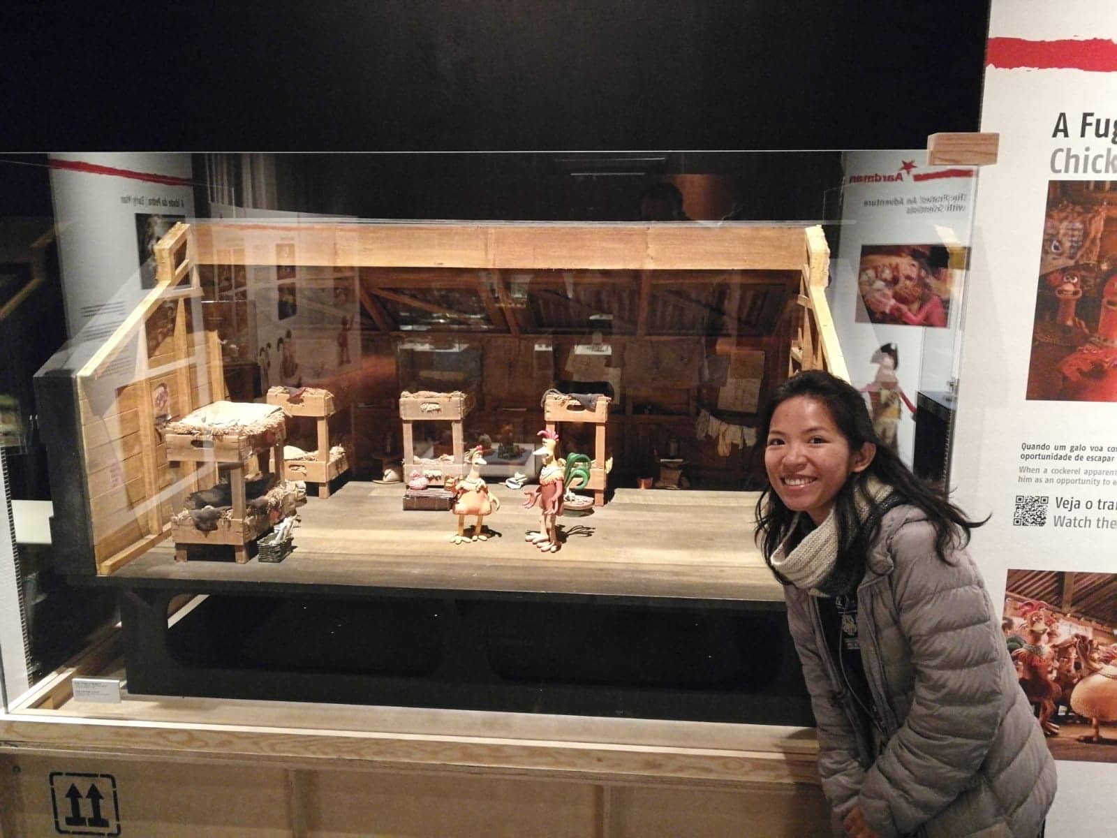 Muzeum to nie należy do najbardziej znanych/odwiedzanych w mieście, ale jest to coś, co bardzo lubię, więc poszłam tam sama. Opłata za wstęp wynosi 5€, a w muzeum znajduje się wystawa stała i czasowa. Powiedziano mi, że wystawa czasowa to ta ze Studia Aardman. Co za niespodzianka! Od lat jestem fanem ich twórczości (w kółko oglądam ” Uciekające kurczaki” i „Creatures Comforts„).