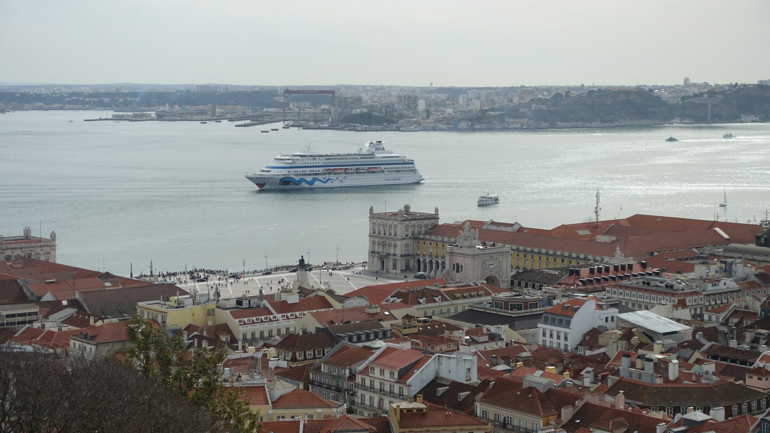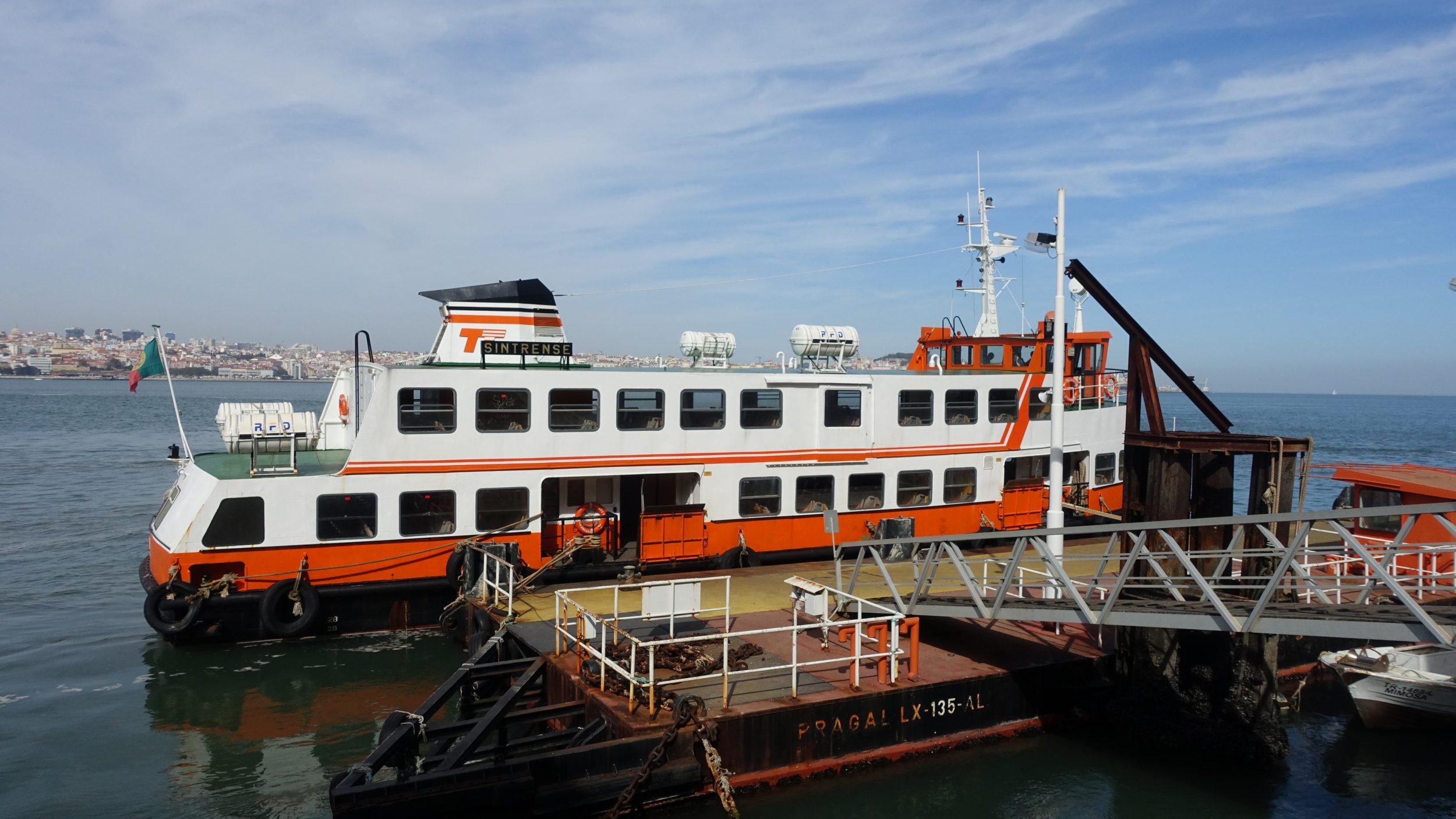 Prom kursuje co 20 minut i wygląda tak: Jest to prom dla tych, którzy mieszkają po drugiej stronie Tagu, nie jest to prom turystyczny, stąd brak miejsca do „opalania” na samej górze statku.