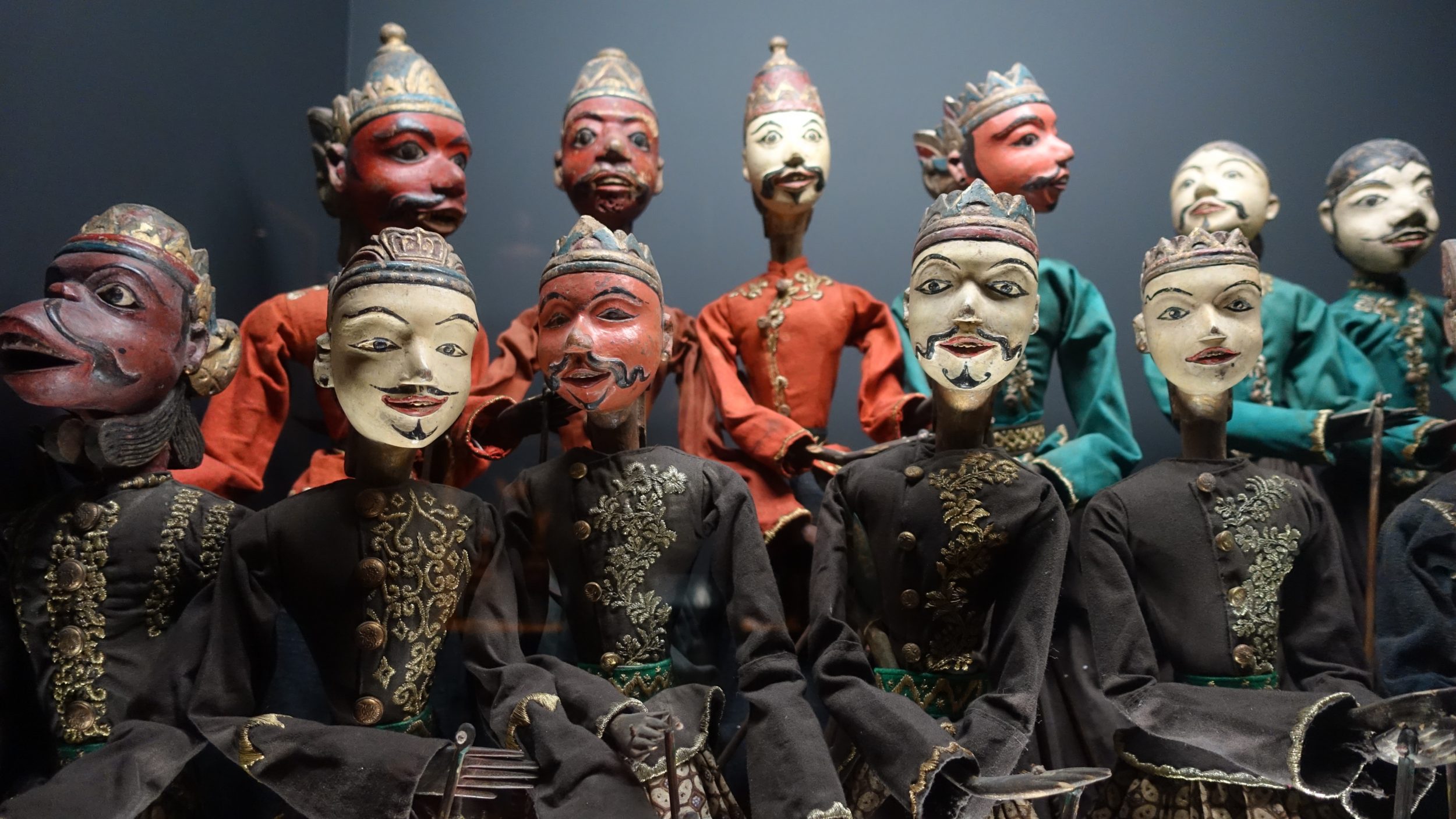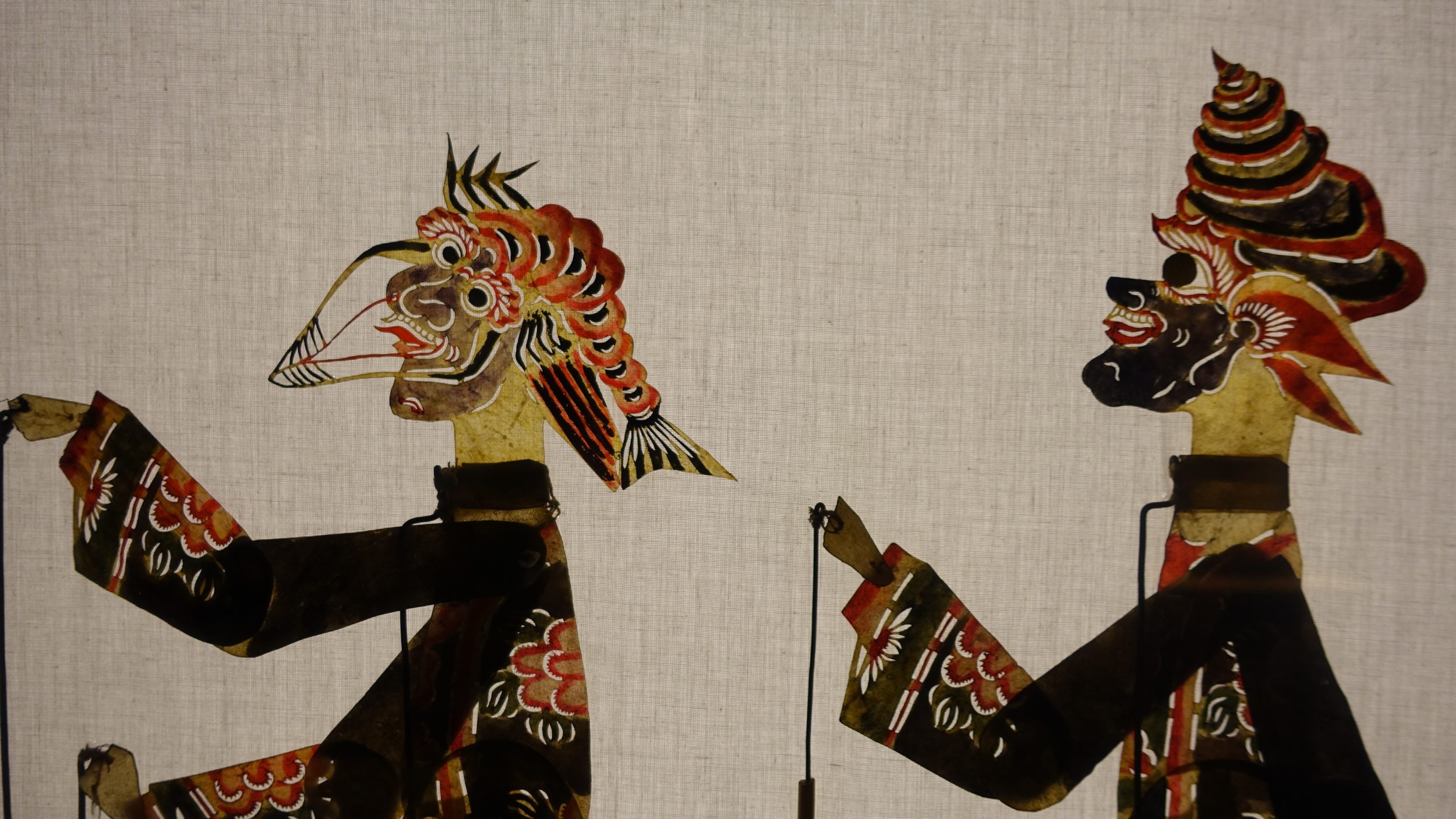 Najpierw pokażę ci stałą kolekcję. Posiadają bardzo kompletną kolekcję wszystkich rodzajów lalek z całego świata. Najpierw kukiełki cieniowe.