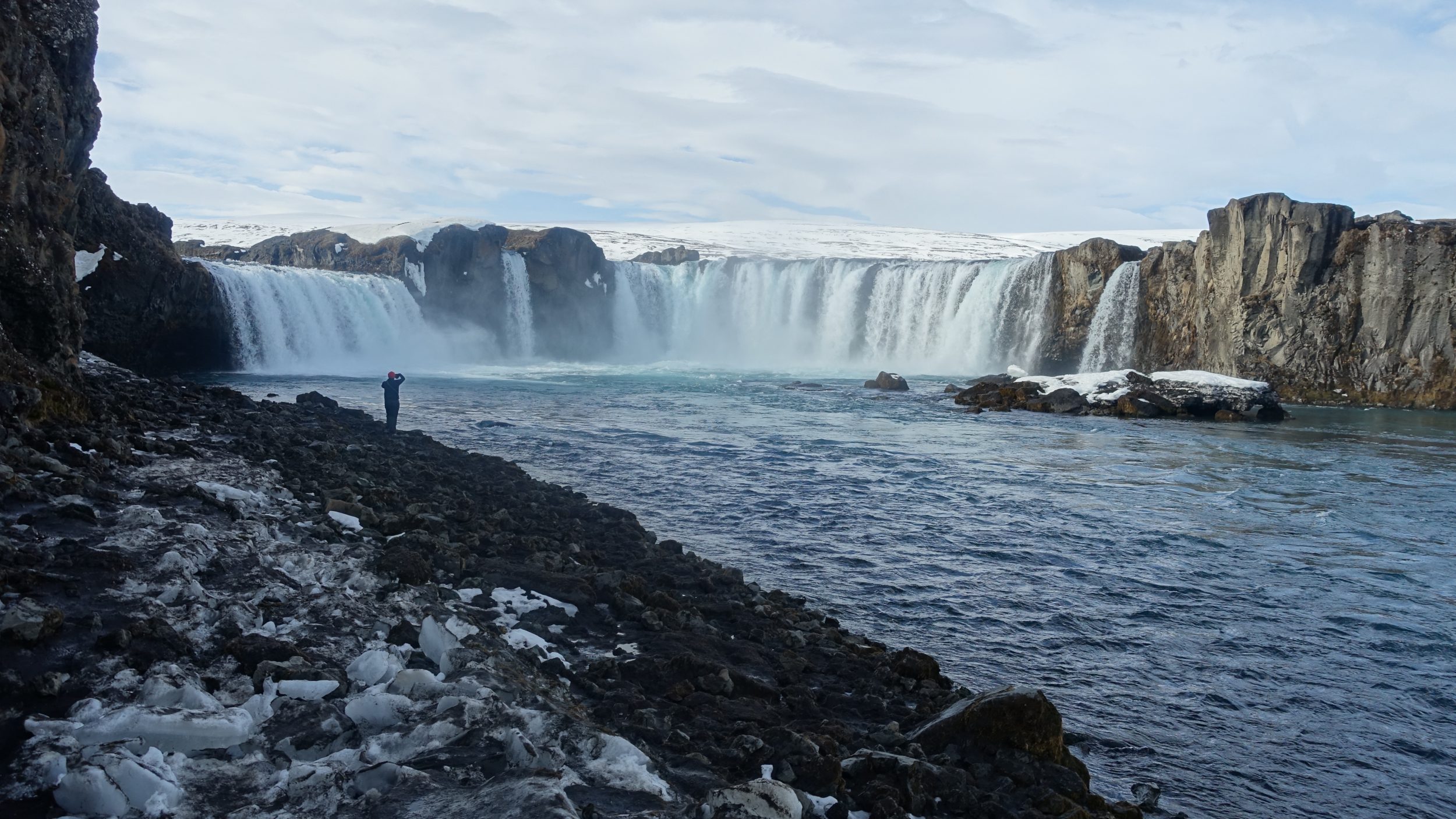 Jezioro Myvatn, ogromne, jest częściowo zamarznięte. Przechodząc przed punktem widokowym w pobliżu jeziora, JB wpadł na szalony pomysł, aby po nim przejść (widząc ślady opon na jeziorze). Na szczęście ta część jest naprawdę mroźna, wszystko dobrze się kończy.