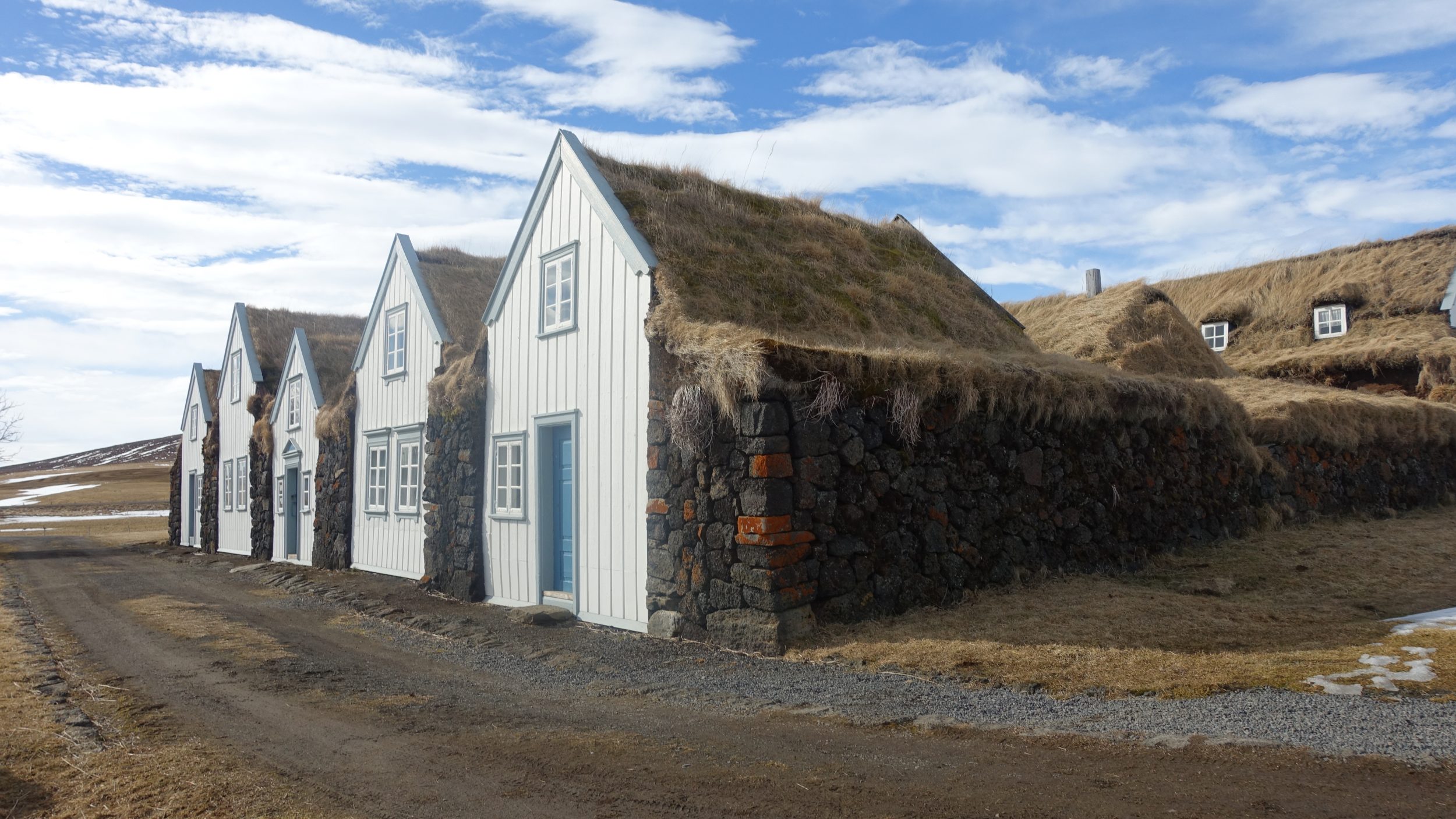 Bardzo lubię domy z dachami pokrytymi trawą, kojarzą mi się z Norwegią, więc w drodze do Husavik robimy tu mały objazd. Jest to stara farma, którą możemy zwiedzać latem. Naprzeciwko znajduje się typowy islandzki kościół, również bardzo piękny. Ponieważ wszystko jest zamknięte, jest to dla nas tylko przystanek fotograficzny.