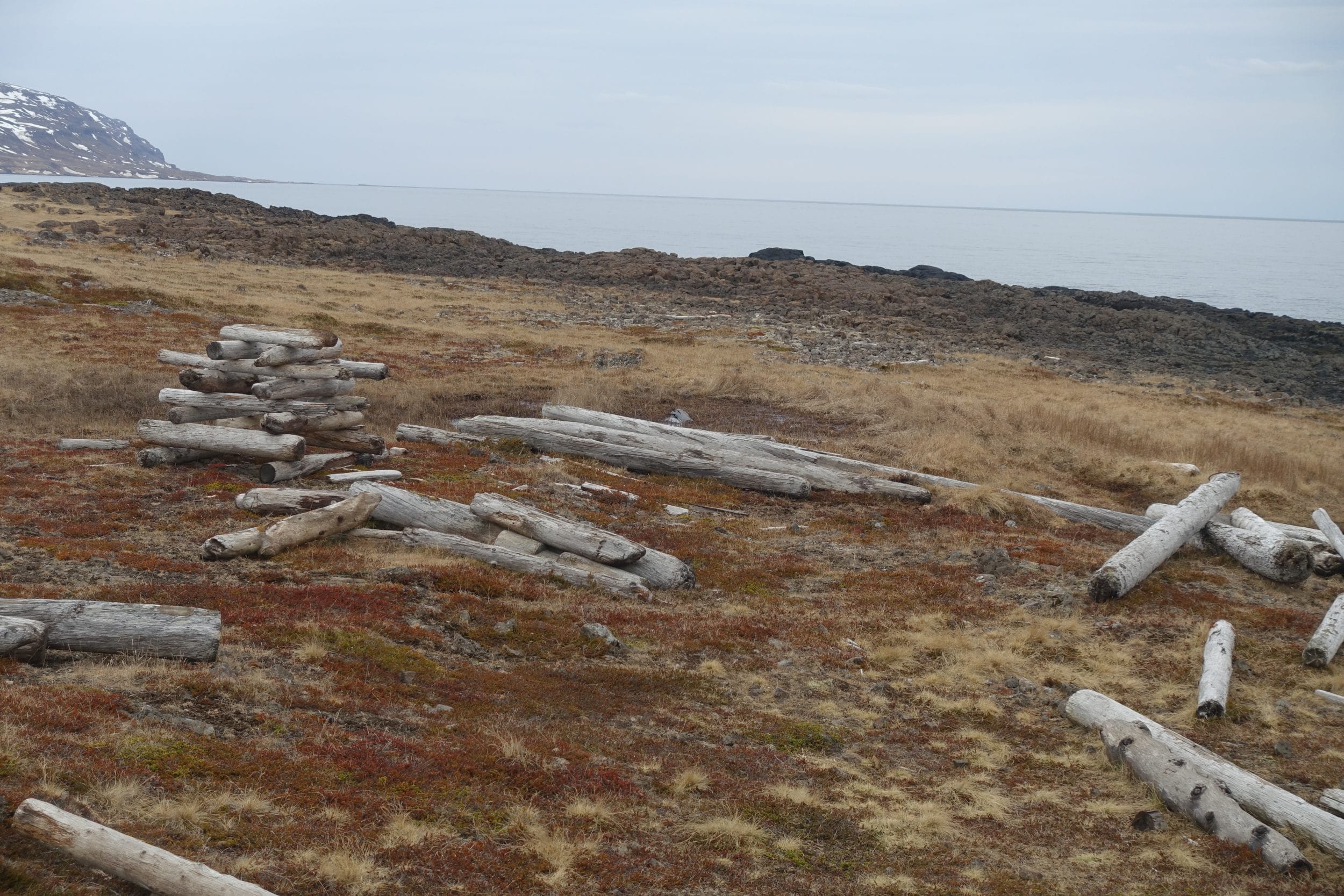 Chociaż na Islandii prawie nie ma lasów, w okolicy widzimy mnóstwo drewna dryfującego wzdłuż wybrzeża, niektóre ułożone w piramidy, być może do późniejszego wykorzystania.