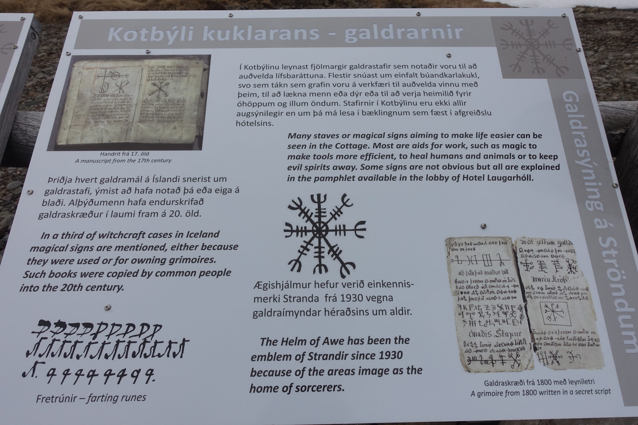 Teksty objaśniające komentują magiczne formuły, które mogły znajdować się w tego typu domach. Pozwalam Ci kliknąć na każdy obrazek, jeśli chcesz je przeczytać (po angielsku i islandzku).