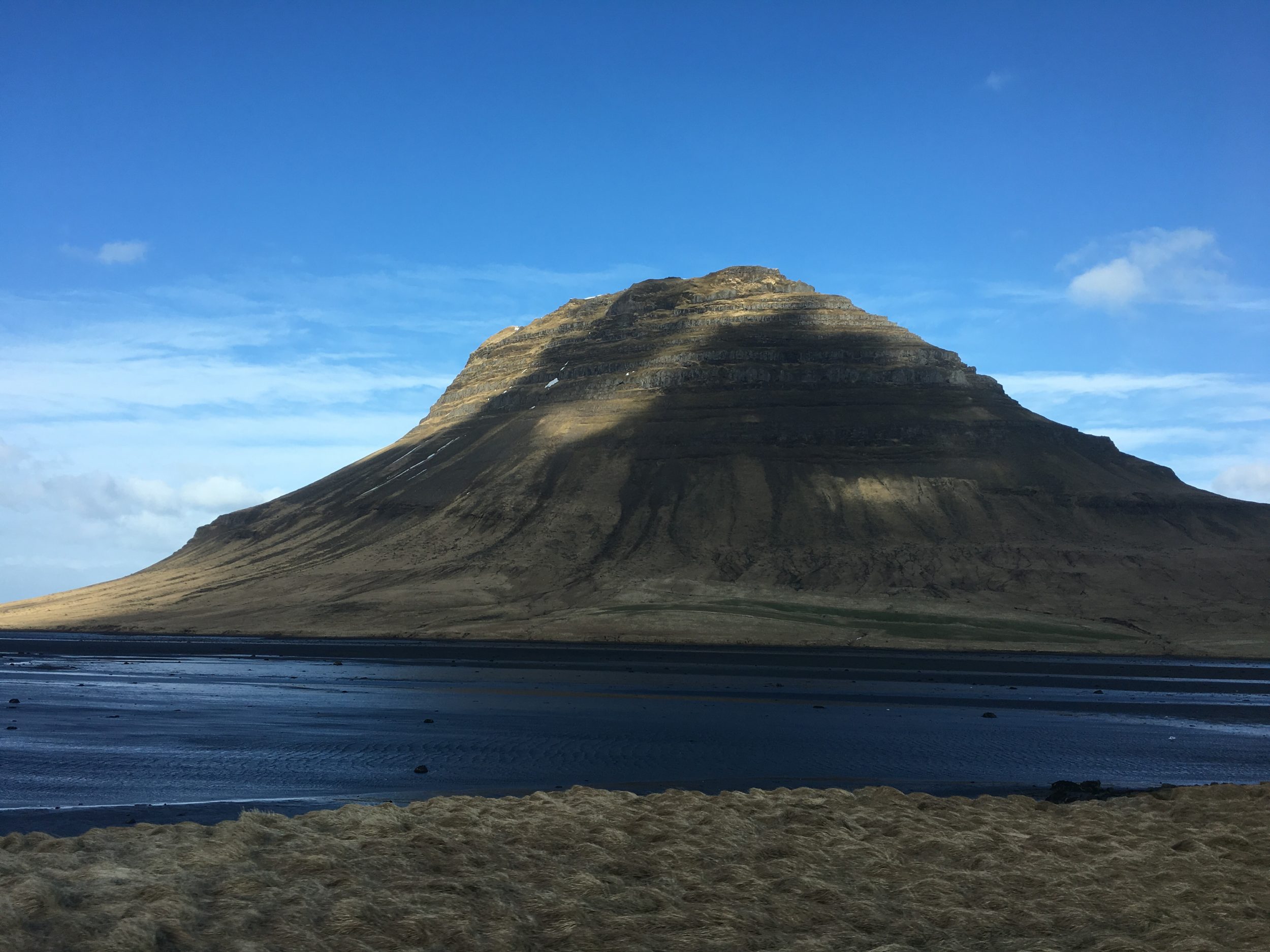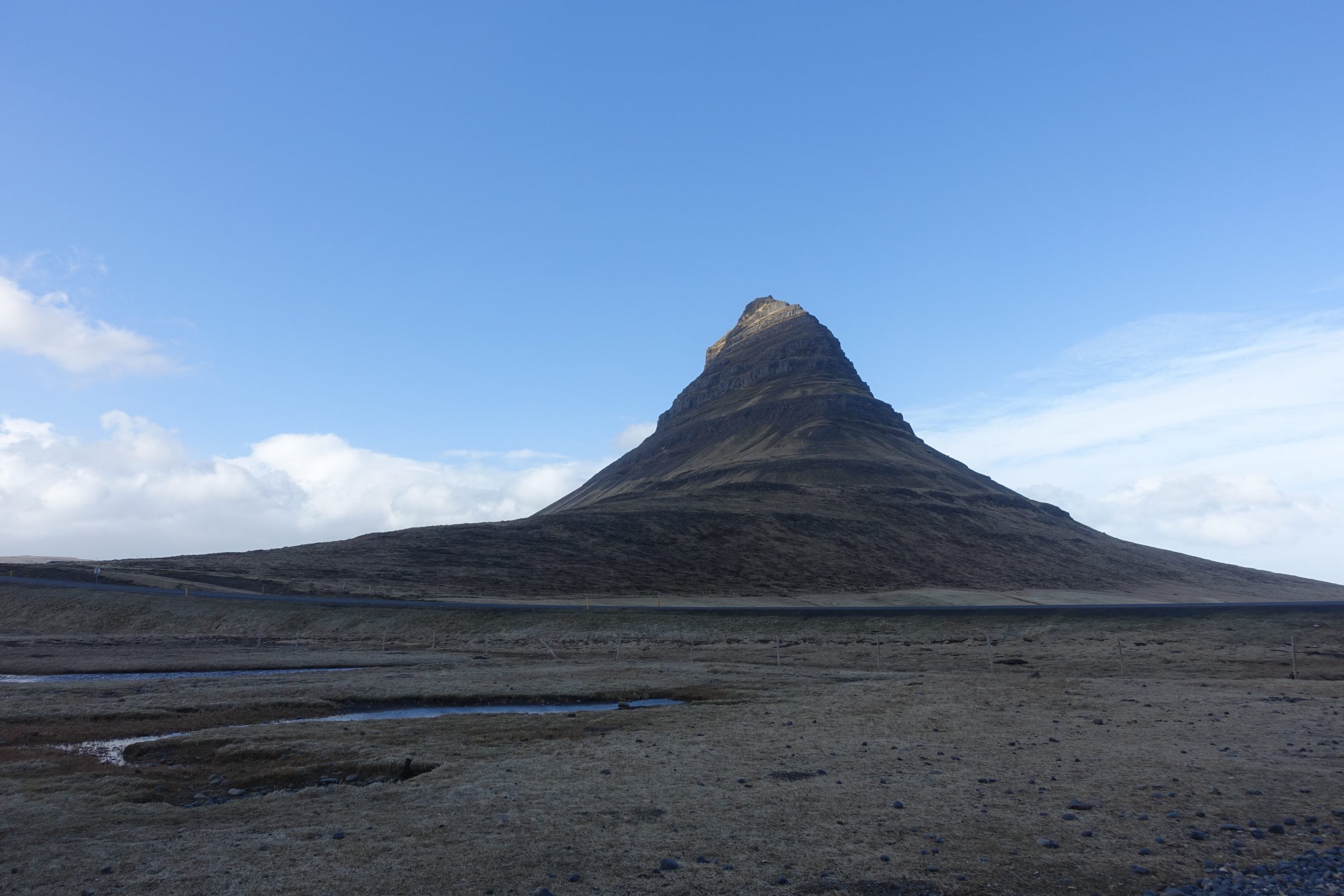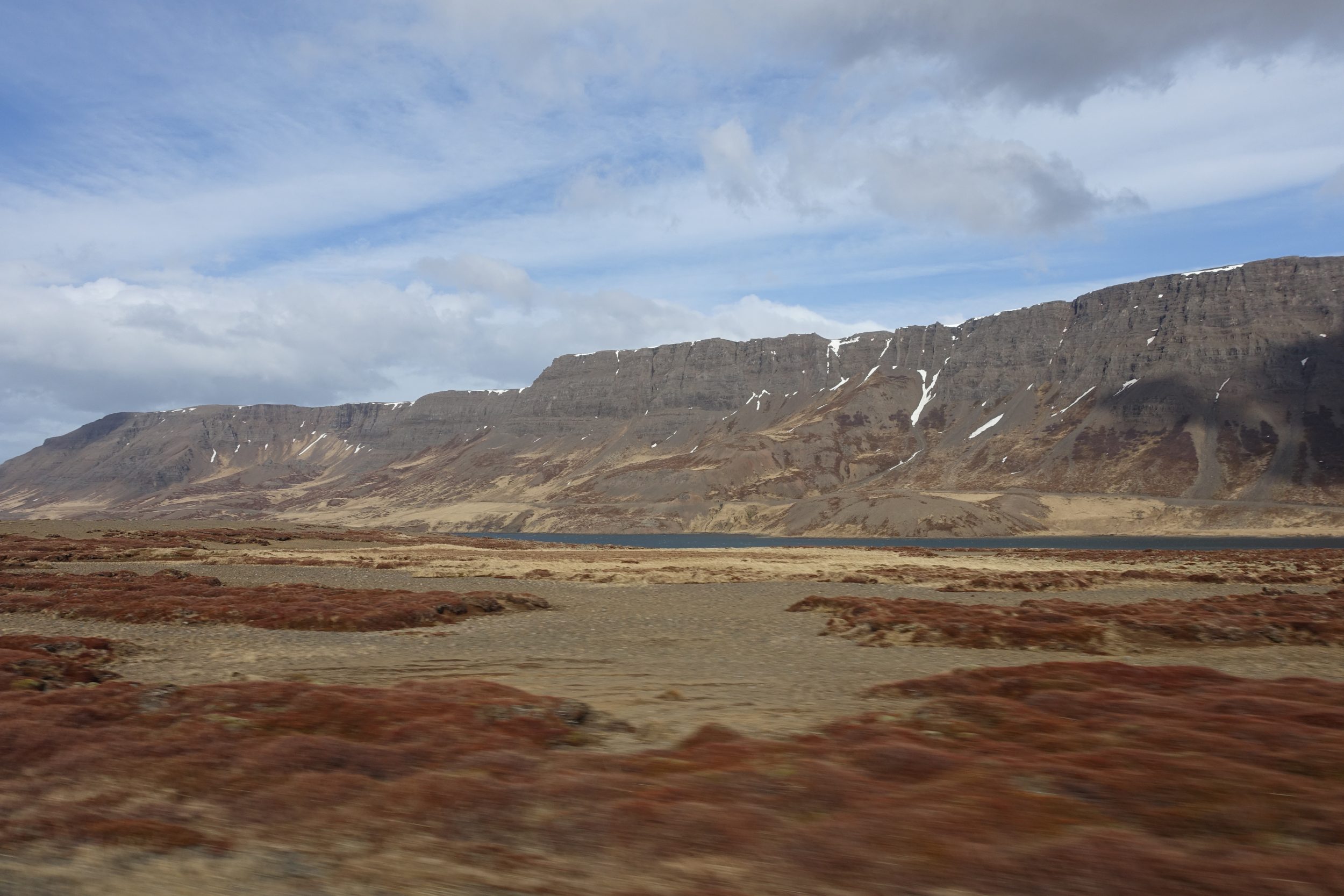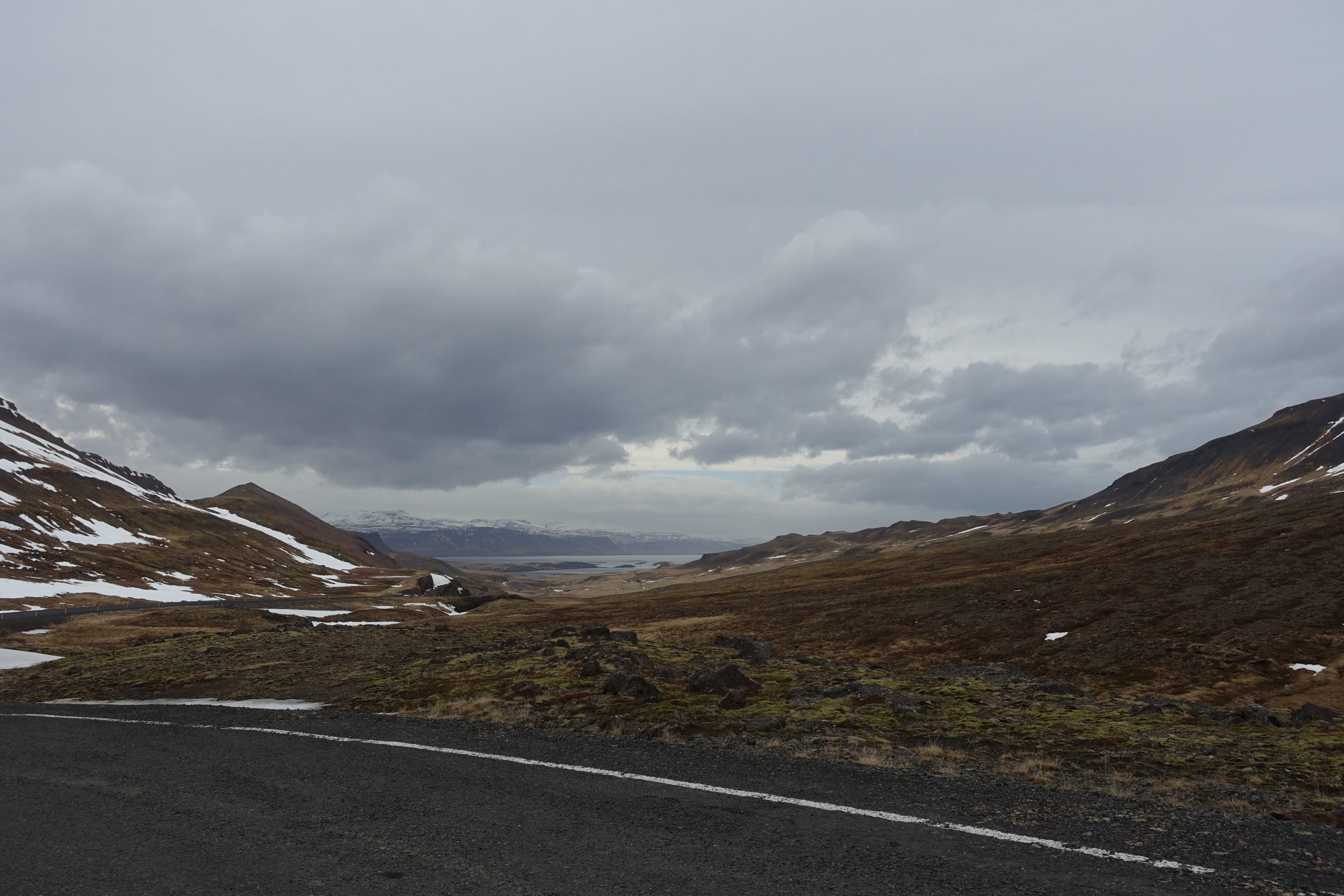 Jedziemy około 2 godzin szutrową drogą, aby dotrzeć do Helgafell. Z tym szarym niebem, i tą monotonną drogą, szczerze mówiąc jestem zmęczony, naprawdę bardzo zmęczony, podczas gdy ja nawet nie jeżdżę. Kiedy więc docieramy przed Helgafell, moje lenistwo każe mi się długo zastanawiać: wysiąść czy nie wysiąść?