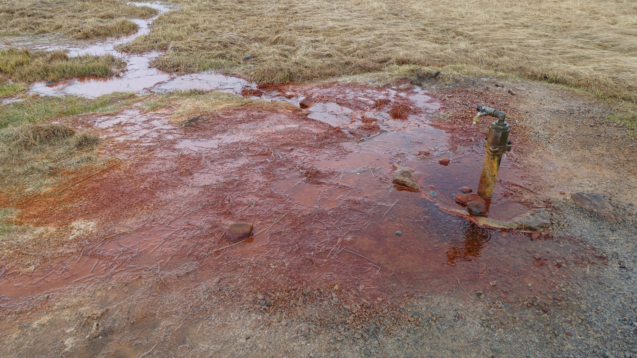 Rolnik, właściciel tego miejsca, ustawił kran, który możesz otworzyć, aby napełnić swoją butelkę. Prosi o 200kr udziału (do wrzucenia do pudełka). Biorąc pod uwagę kolor otoczenia i to, że mam już za dużo żelaza we krwi, nie testowałam go 🙂