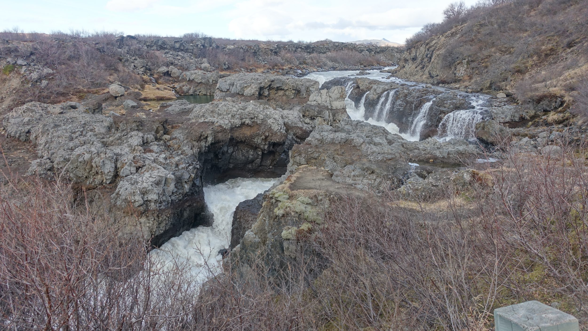 Dzień kończymy wizytą w Barnafoss, co oznacza „wodospad dla dzieci”. Niestety, za tą miłą nazwą kryje się utonięcie (bardzo dawno temu) dwójki dzieci, przekraczających naturalny łuk nad wodospadem. Ich matka, zdruzgotana, kazała zniszczyć łuk, aby taki wypadek się nie powtórzył.