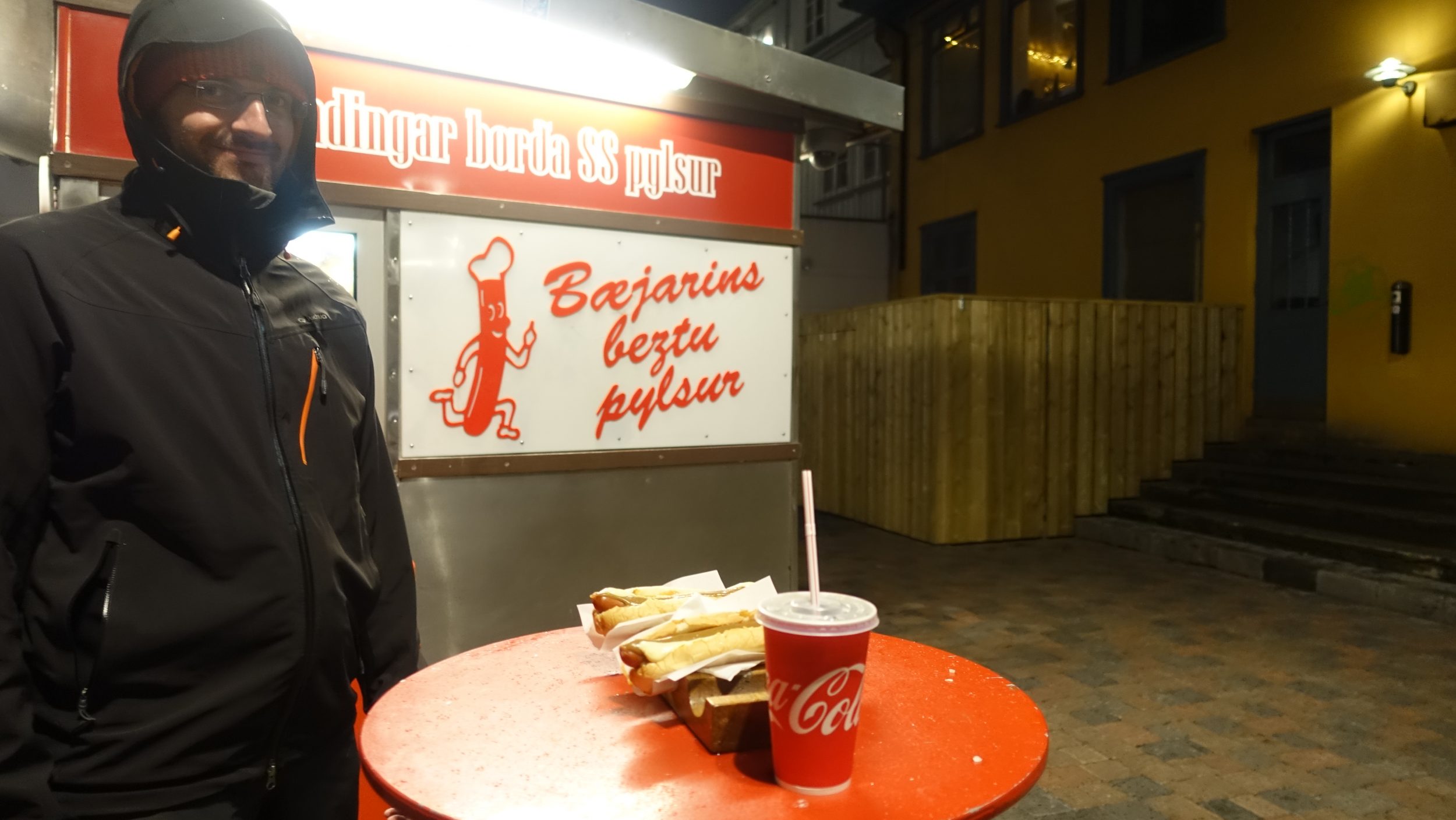 Zjadłszy późny lunch, decydujemy się na hot doga w Baejarins Beztu Pylsur. Podobno to najlepszy hot dog w mieście, a bywał tu nawet Bill Clinton