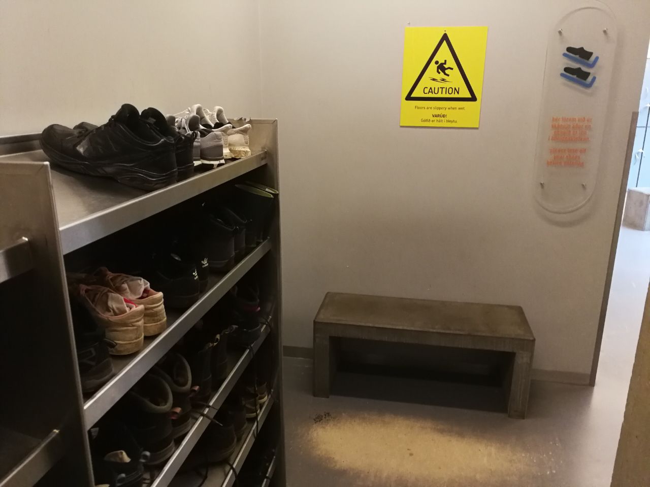 Jak w każdym spa lub basenie na Islandii, musisz najpierw zdjąć buty przed wejściem do przebieralni.