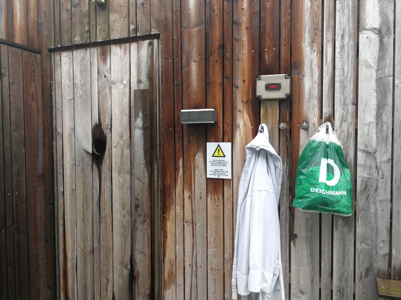 Wszystko czyste, możemy wreszcie opuścić szatnię. Z deszczem i wiatrem tego dnia, te kilka metrów, aby dotrzeć do łaźni są bolesne ^^.