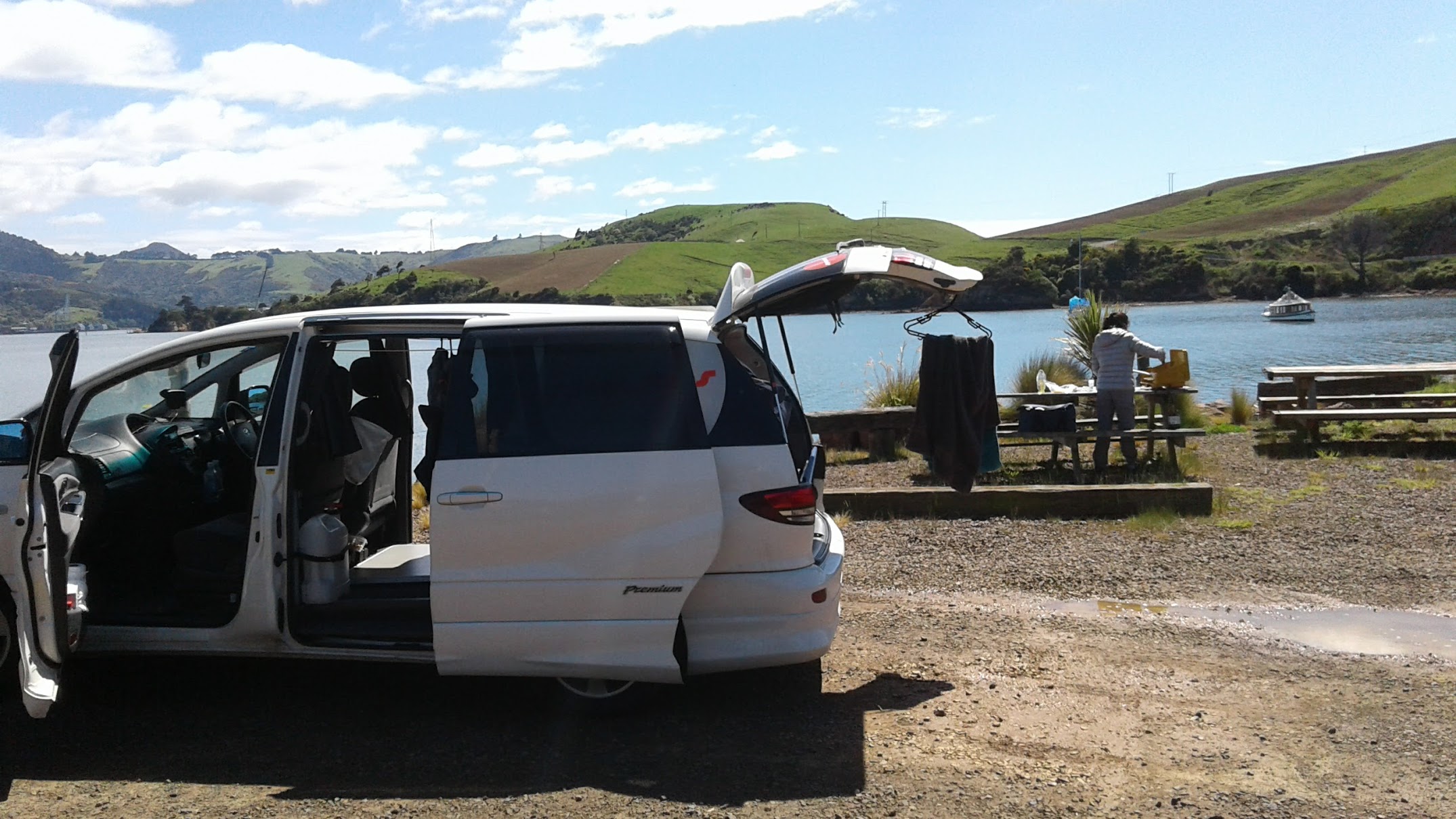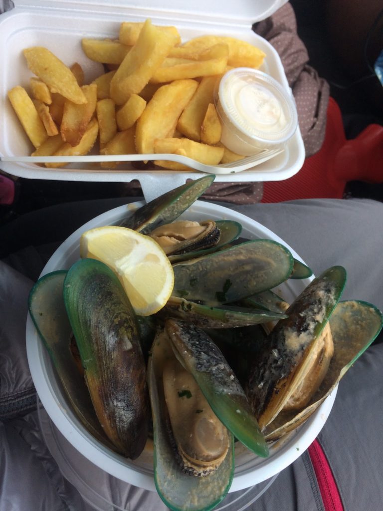Nie jest źle, po drodze jakiś food truck puszcza do nas oko, a ja zatwierdzam w 100% zielone małże (gigantyczne), które podaje mi sprzedawczyni (12$NZ). Mewy najwyraźniej są tego samego zdania, bo dziesiątkami krążą wokół naszego samochodu.