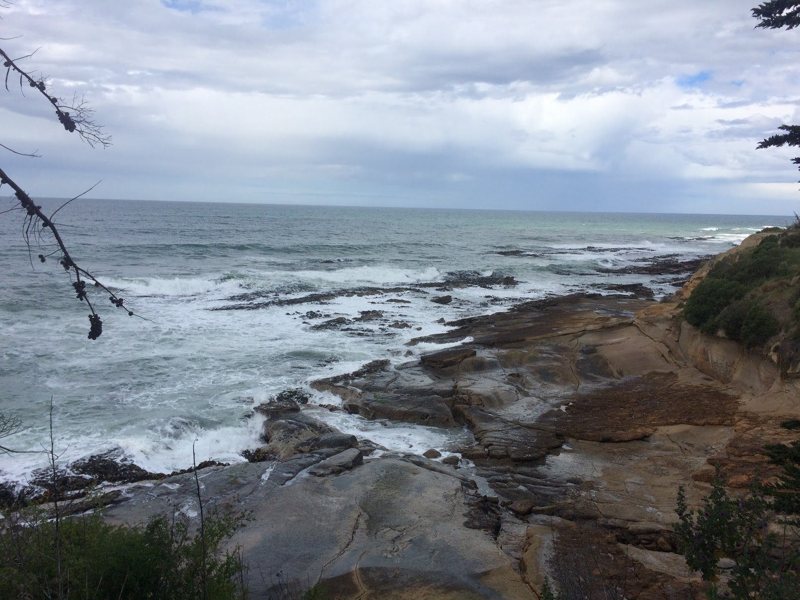 Idziemy do Slope Point, aby zobaczyć kule, które wyglądają jak Moeraki Boulders, ale popękane lub otwarte na górze, tworząc naturalne baseny. Niestety, głazy te są widoczne tylko podczas odpływu i zupełnie nam to umknęło.