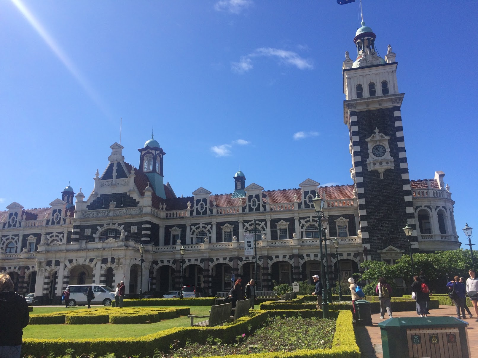 dnia pojechaliśmy do Dunedin, gdzie odkryliśmy bardzo ładne miasto o szkockiej architekturze. Aspekt Disneylandu wydaje się być znakiem firmowym Nowej Zelandii, ponieważ wszędzie, gdzie się udajemy, znajdujemy tę samą architektoniczną harmonię, tę samą czystość.