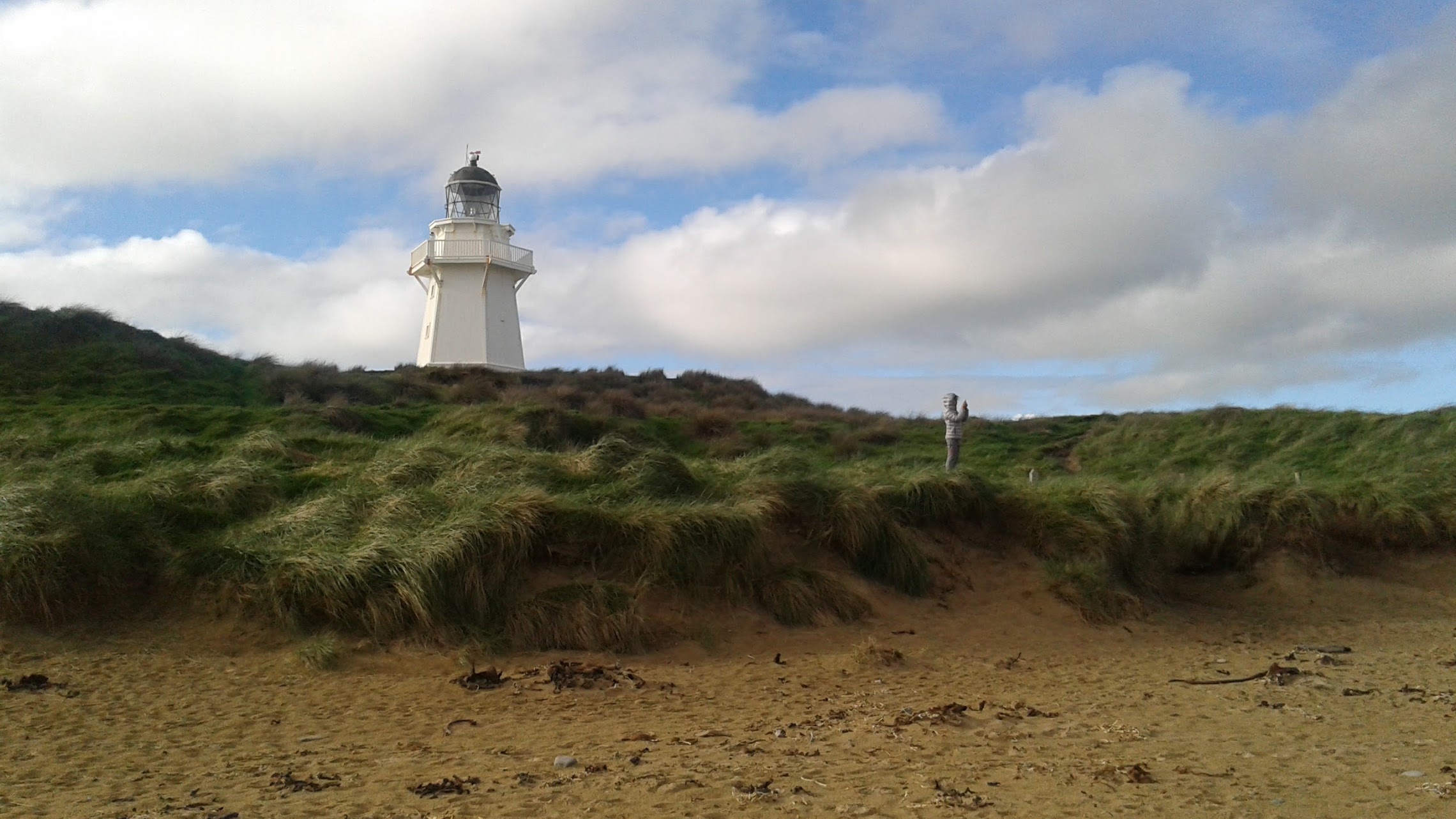 Dotarliśmy w pobliże Slope Point około 17:00 i skorzystaliśmy z okazji, aby odwiedzić Waipapa Point. To co dla nas jest zwykłym punktem widokowym zamieniło się w niezapomniane przeżycie. Podczas gdy JB obserwował plażę, lew morski (którego zauważył już wcześniej), wyszedł z wody, aby zobaczyć swoje szczenię (lub dziewczynę), śpiące na plaży. Jest bardzo duży (co najmniej 2m), czarny, okazały i chodzi dość szybko