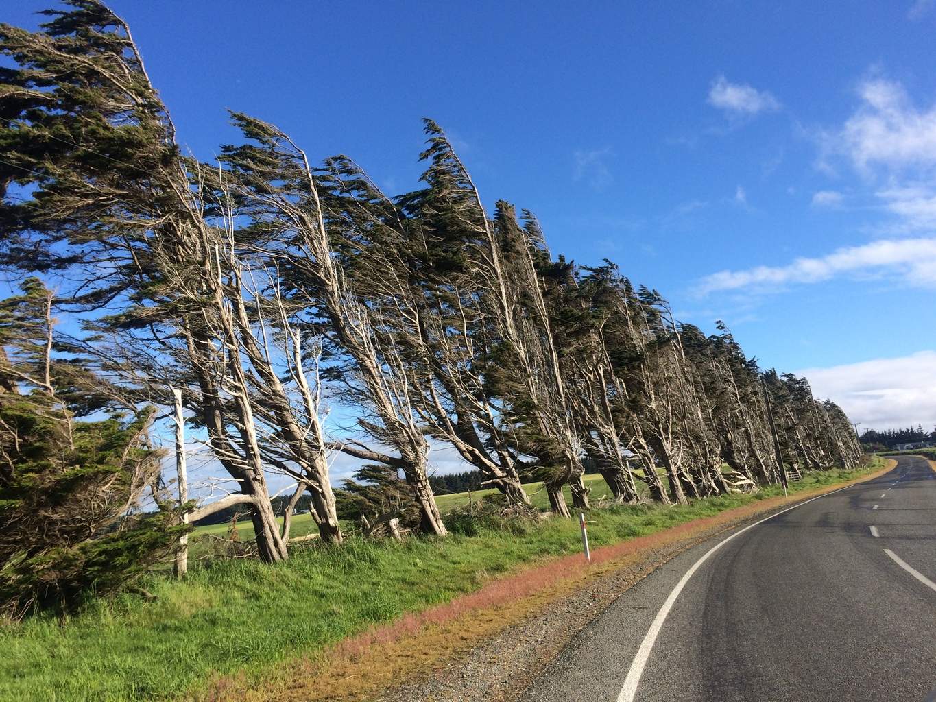 Po drodze zauważamy drzewa tak źle traktowane przez wiatr, że są całkowicie zamarznięte, nawet gdy nie ma wiatru