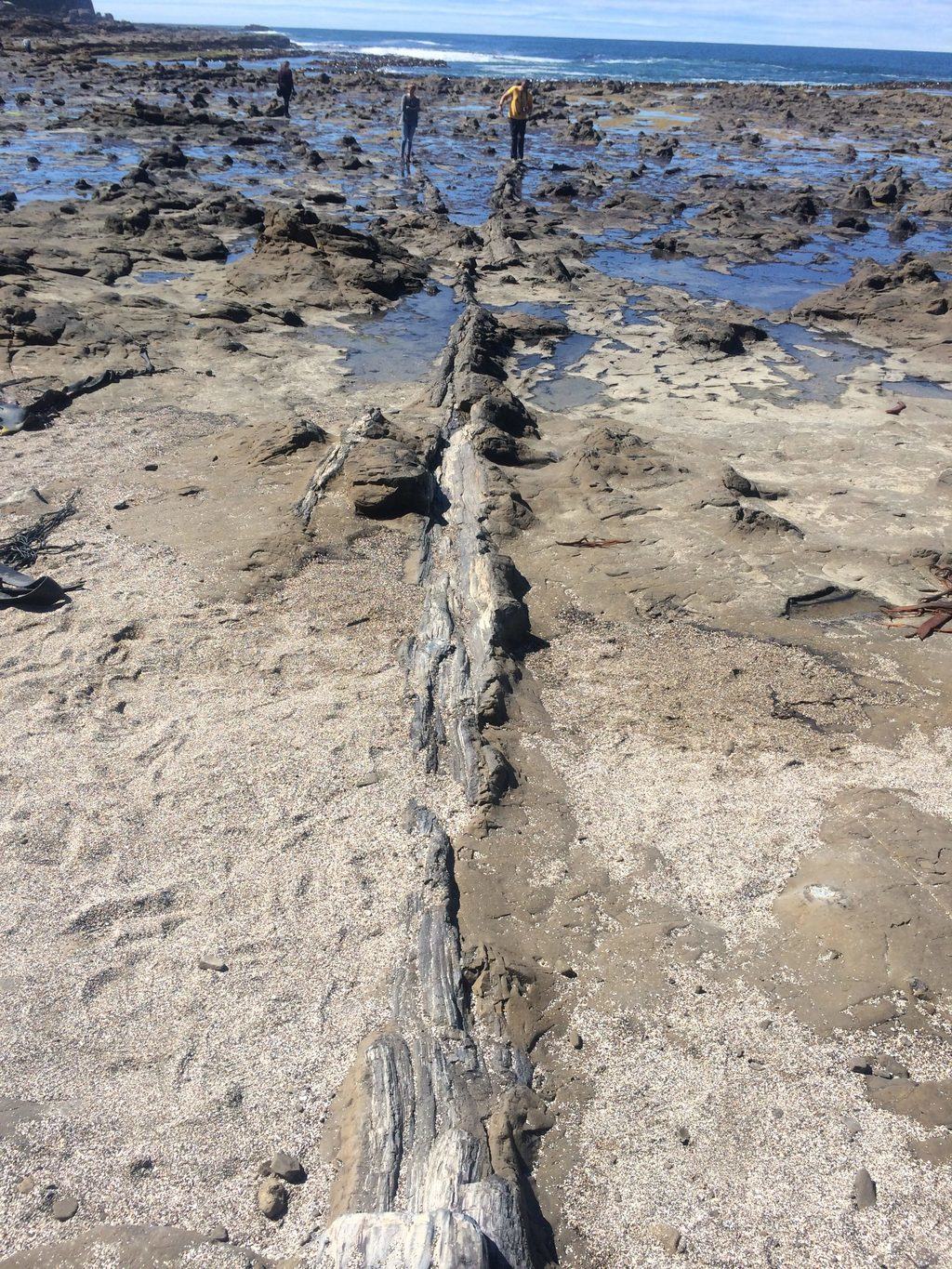 Następnie udajemy się do Curio Bay, aby zobaczyć skamieniały las (liczący 170 milionów lat). Zniszczone przez wulkany drzewa oczywiście już nie stoją, ale możemy zobaczyć ślady długich pni drzew całkowicie skamieniałych. Niektórzy pozbawieni skrupułów turyści zabierają nawet skamieliny do domu jako pamiątki (pfff). Ostrzega nas tablica z napisem „ten las jest tu od 170 milionów lat, dlaczego teraz się zatrzymywać? To tutaj możemy obserwować pingwiny o zmroku, gatunek bardzo rzadki i mniej płochliwy niż w innych miejscach w Nowej Zelandii