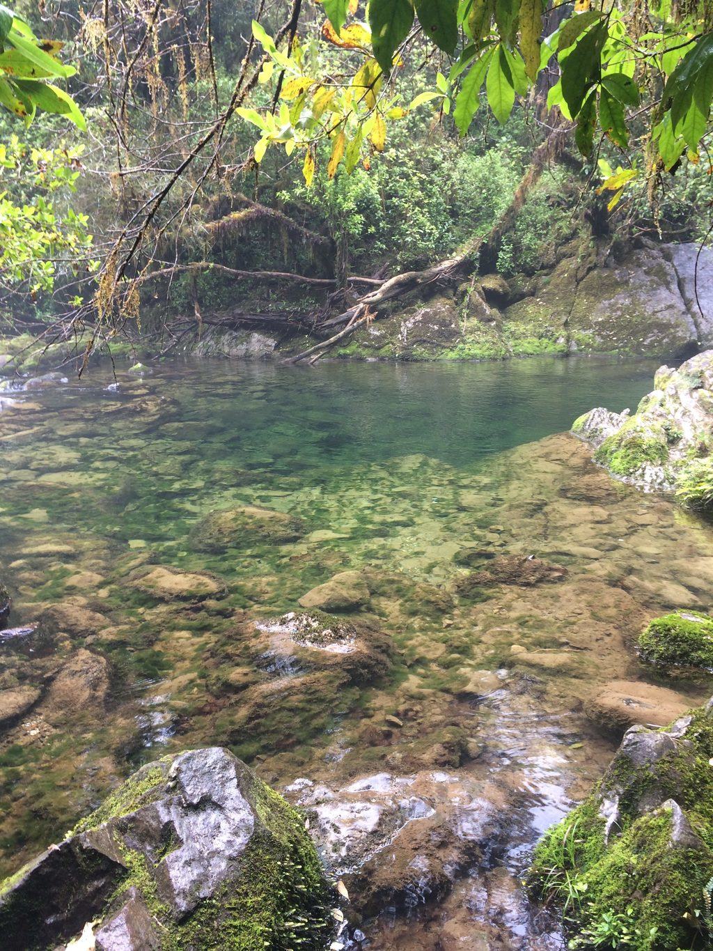 (2) Riwaka Resurgence: przyjeżdżamy tu, aby zobaczyć naturalny basen na dnie małego wodospadu, gdzie woda jest super przezroczysta (a przy dobrej pogodzie niebieska). Można się w nim kąpać i dojść do źródła. Ale tylko się przyjrzymy
