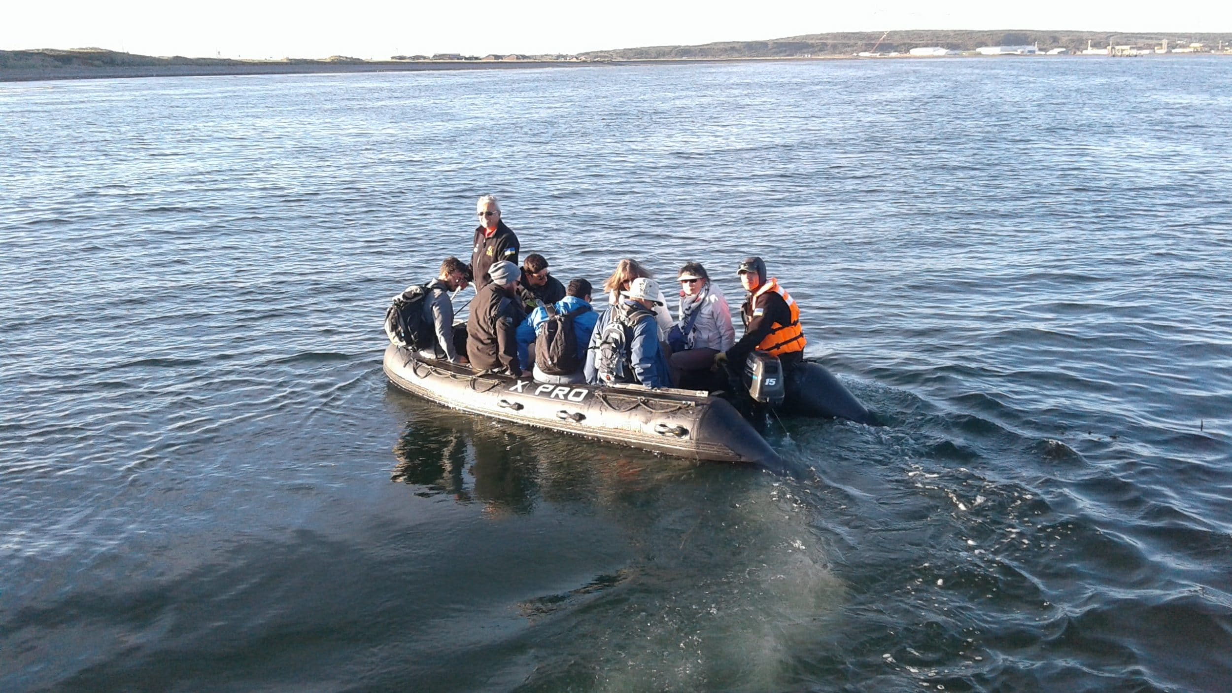 Jesteśmy 35 do wyjazdu z tej agencji, rozmieszczone w 3 furgonetki. 30 minut później docieramy do terminalu niedaleko lotniska, gdzie czeka na nas łódź typu „sea rescue”. Zaletą tej łodzi w porównaniu z promem jest to, że płynie super szybko. Tak szybko, że potrzebujemy tylko 1 godziny, aby dotrzeć na Wyspę Magdaleny, gdzie 60 000 par pingwinów przyjeżdża co roku, aby łączyć się w pary i robić dzieci.