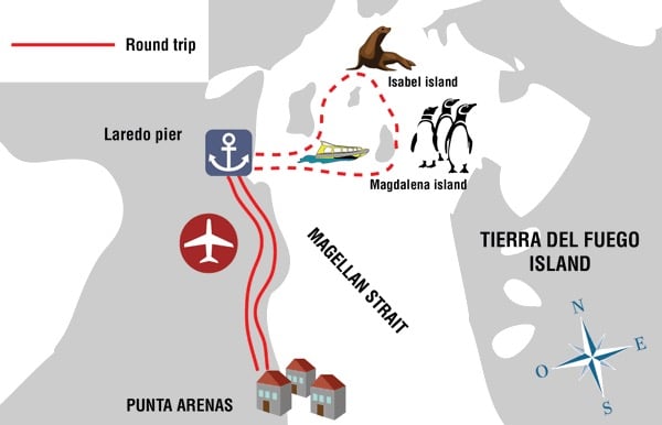 W rzeczywistości jest całkiem możliwe, aby przejść bezpośrednio do terminalu promowego 8 km od centrum miasta i wziąć prom za 45 000 pesos / osoba o 16:00, ale jesteśmy zmęczeni chilijskich taksówek i kierowców, nie ma mowy, aby przejść do terminalu taksówką. Co więcej, ta wycieczka, którą kupiliśmy w Solo Expediciones (65 000 pesos/osoba) zawiera jeszcze jeden przystanek, na wyspie lwów morskich. Zobaczysz, dlaczego tego nie żałujemy.