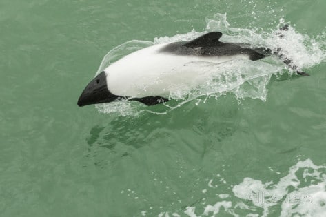 A tam czeka na nas wielka niespodzianka: w drodze powrotnej płyną za nami delfiny! Tutejsze delfiny są zupełnie inne, są białe z czarną głową. Są one nieco oddalone od łodzi, ale wystarczy je rozpoznać, zwłaszcza gdy delfin postanowi sprawić nam przyjemność skacząc super wysoko. Zamieszczam tu zdjęcie ilustracyjne, ponieważ nie udało mi się zrobić zdjęcia samemu