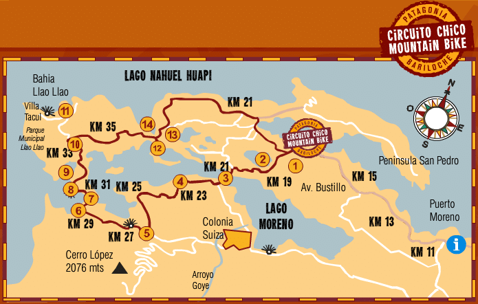 Szczegółowa mapa pochodzi ze strony http://www.circuitochicobikes.com/circuito_chico_mountain_bikes_in_bariloche.html