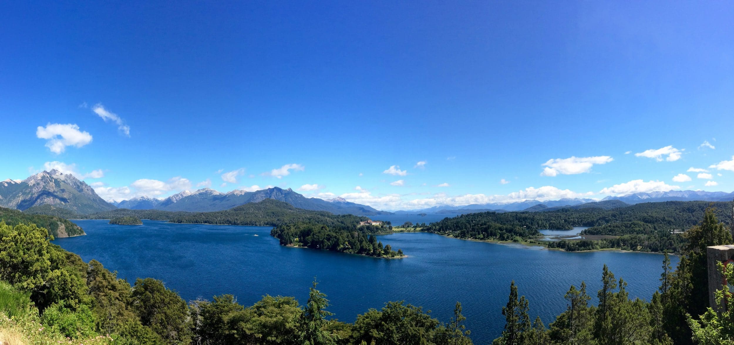 W końcu docieramy do tego punktu widokowego, który tworzy reputację Bariloche (kliknij na zdjęcie, aby powiększyć). Możemy nawet zrobić sobie zdjęcie z prawdziwym Saint-Bernardem lol. Na środku jeziora widzimy hotel Llao Llao, najbardziej znany hotel w Argentynie dzięki swojemu wymarzonemu położeniu.