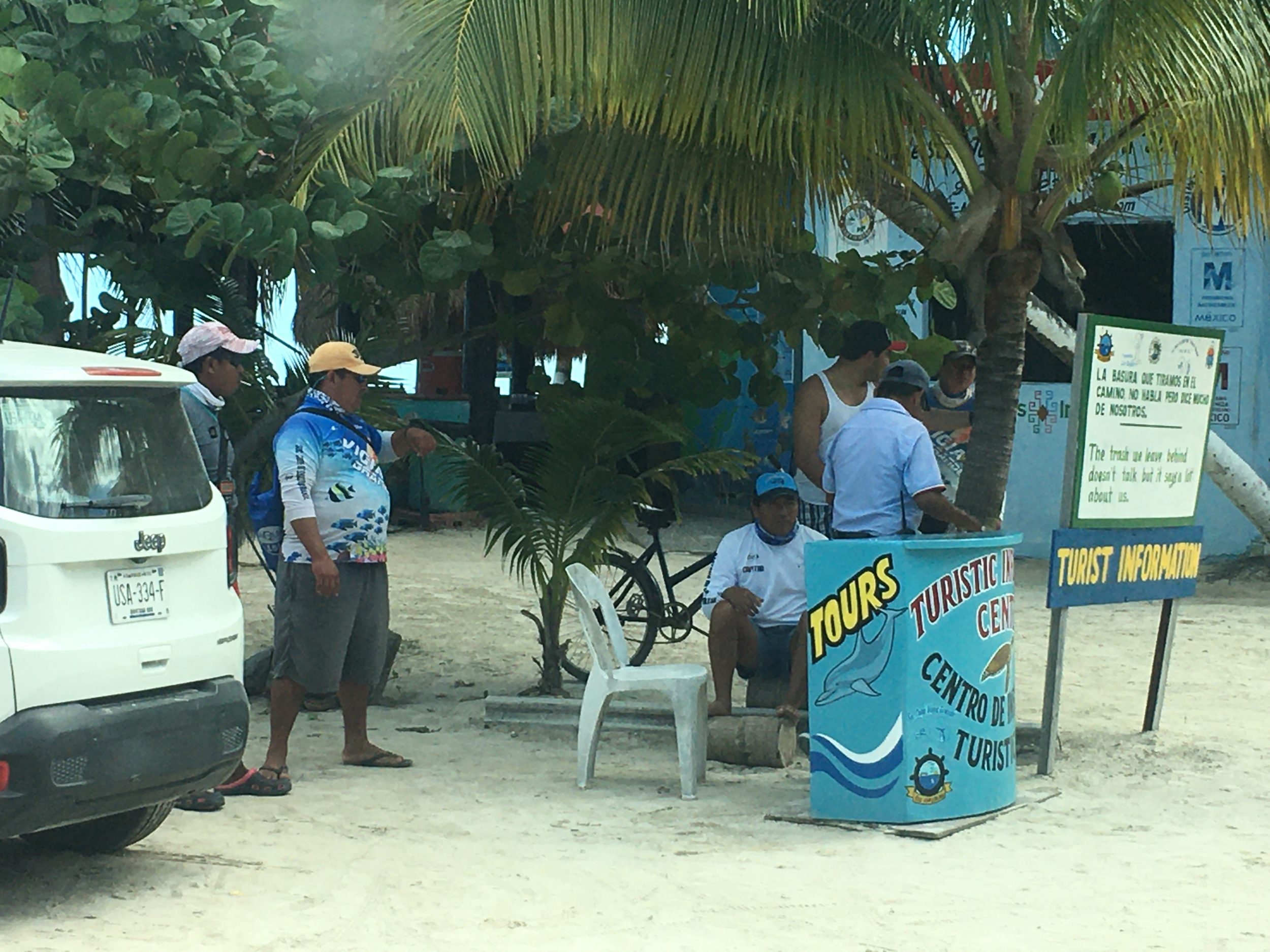 biuro turystyczne” w Punta Allen do rezerwacji łodzi – na środku głównej drogi