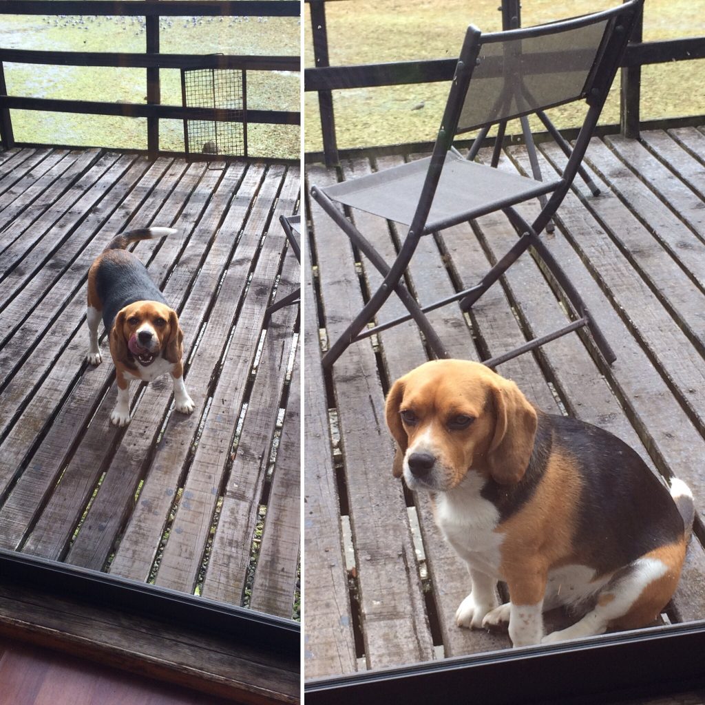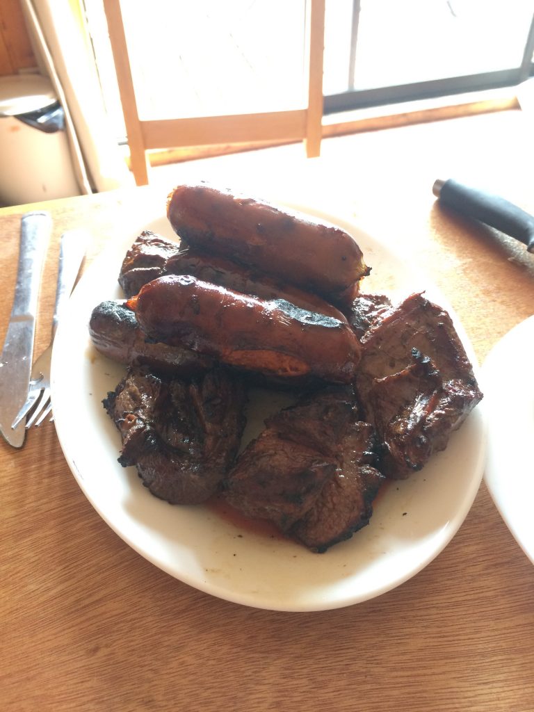 Przez kilka dni codziennie (właściwie przy każdym grillu) chodzimy do tego psa, wieczorem nawet puka do drzwi, żeby poprosić o jedzenie. Nie myśleliśmy o nadaniu mu imienia, ale kochamy go i jest bardzo dobrze wychowany (nie próbuje wchodzić do schroniska)