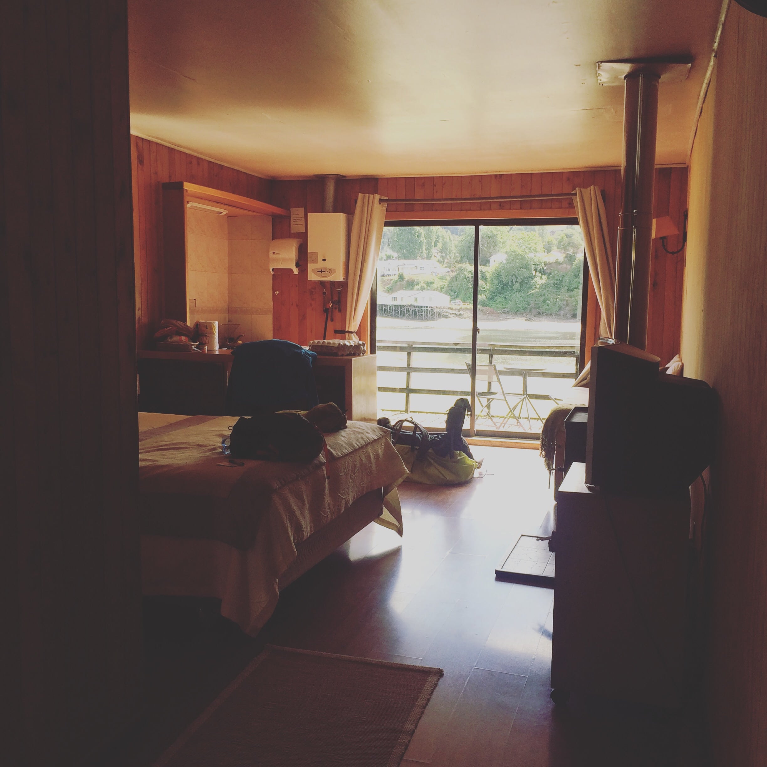 - Nie zatrzymuj się w centrum Castro, gdzie nie ma nic do oglądania, wybierz zamiast tego hotele z widokiem na zatokę, lub na palach. Nasz hotel: Cabanas Palafitos Los Pescadores, jest idealny do spędzenia Świąt Bożego Narodzenia, z małym kominem, super uśmiechniętymi sprzątaczkami i tarasem z widokiem.
