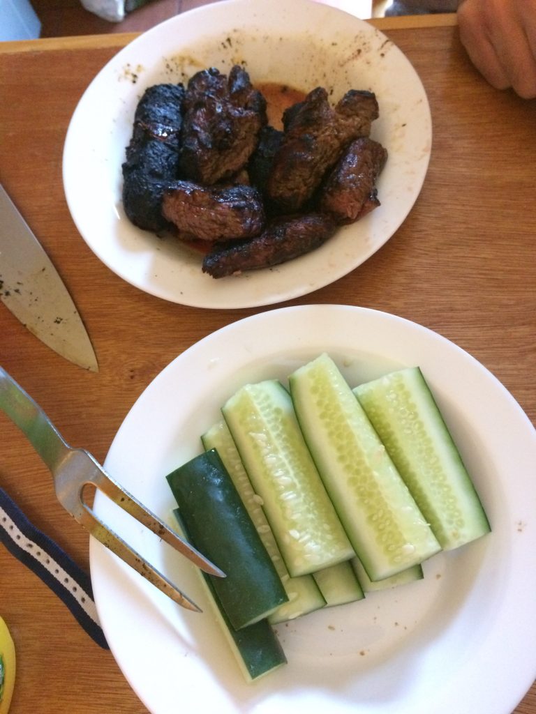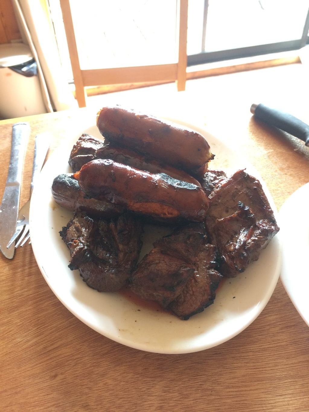 Gdy po grillu zostaje tylko żar, pojawia się pies, który znikąd błaga o jedzenie, poczuł zapach grilla. Nasz taras jest zamknięty, musiał się nieźle namęczyć, żeby przyjść tu z sąsiedniego tarasu. Daję mu trochę resztek chorizo i obiecuję, że później kupię mu coś do jedzenia. Czyż nie jest uroczy?