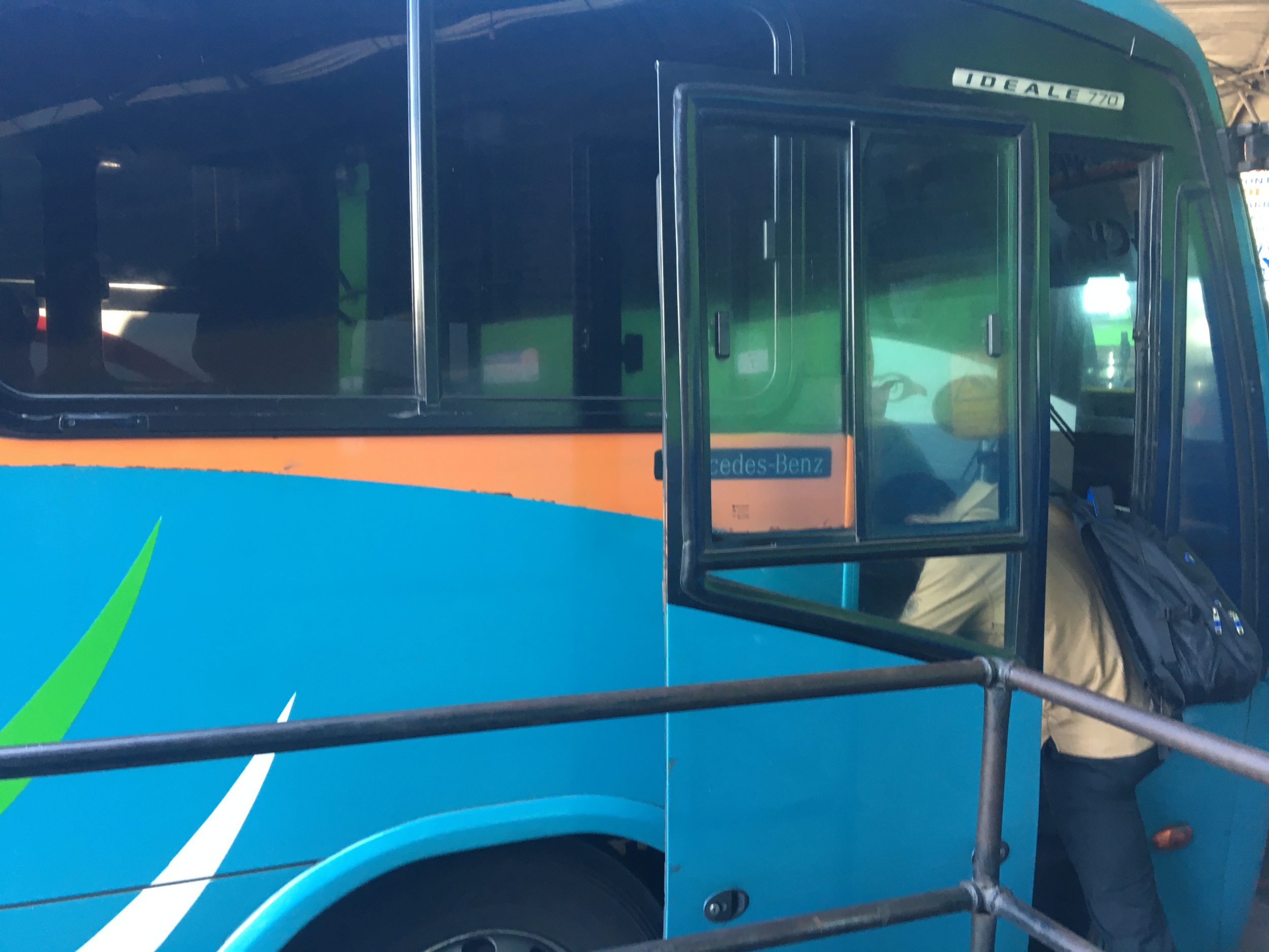 - Z Ahuachapan, przejdź 6 minut (lub weź tuktuk, 0,5 $) do wyjścia mini-busów do Concepcion de Ataco(Google Maps), które odjeżdżają, gdy są pełne (0,5 $). Nie ma bagażnika, ale można zostawić bagaże w małym korytarzu. Jazda jest szybka, więc jak się stoi całą drogę, to też nie jest strasznie. Ataco nie jest stacją końcową, ale autobus zatrzymuje się na niej. Przystanek w Ataco znajduje się tuż przy wjeździe do miejscowości(Google Maps)