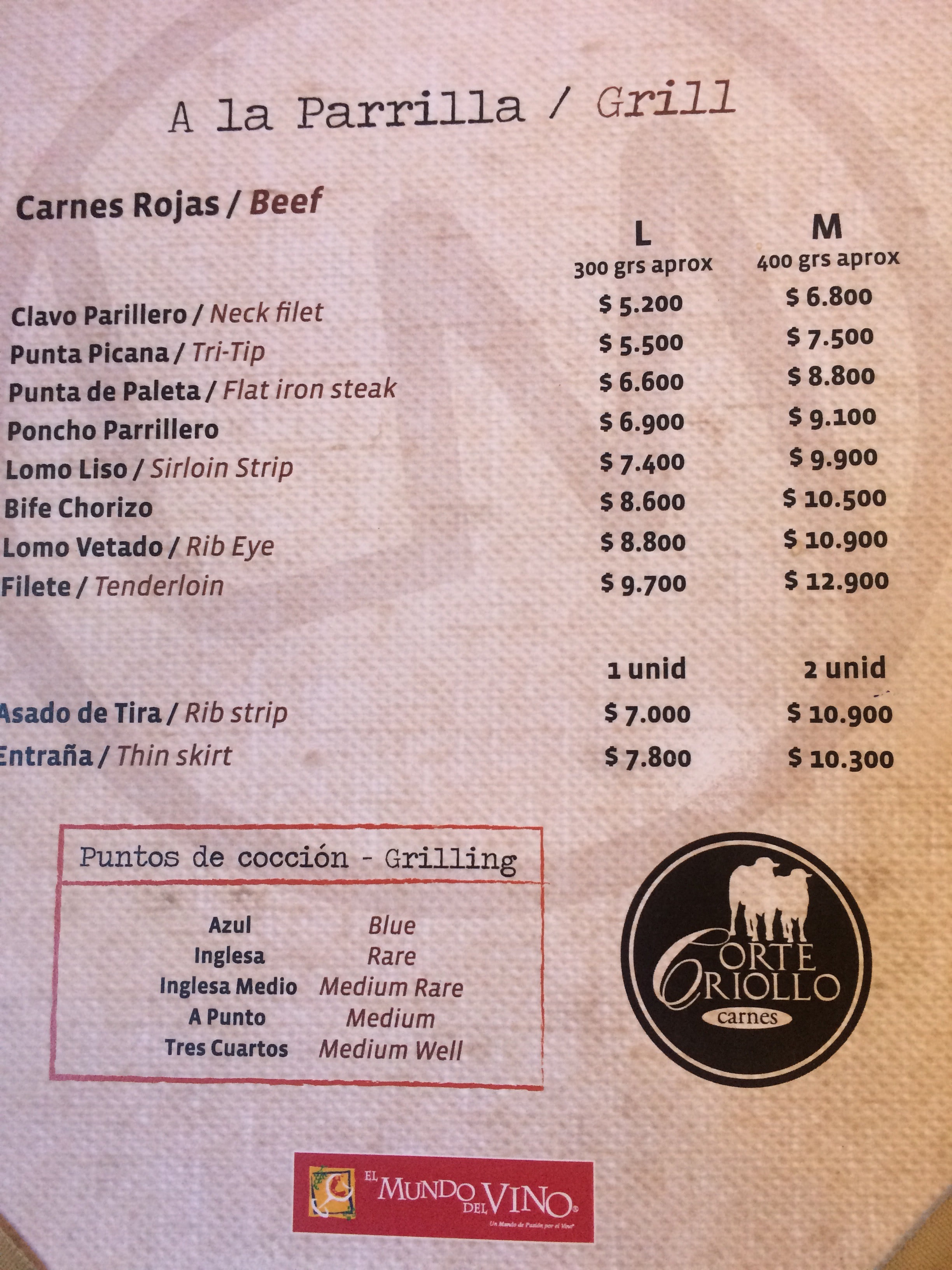 Mięso w steakhouse’ach: Parrilla (AR) / Asado (CH)