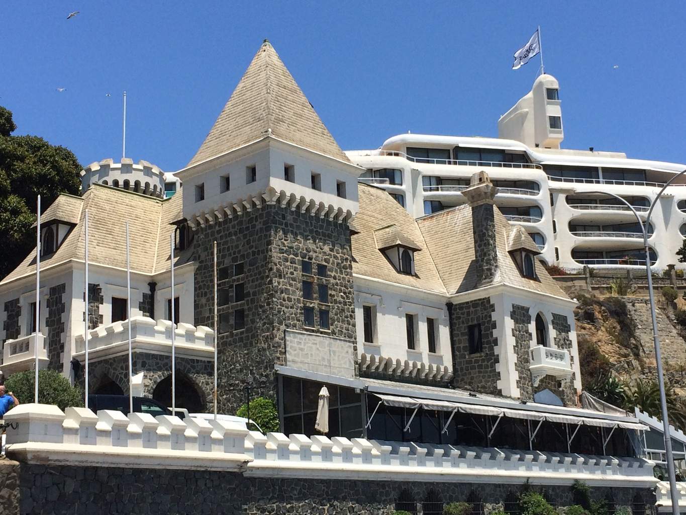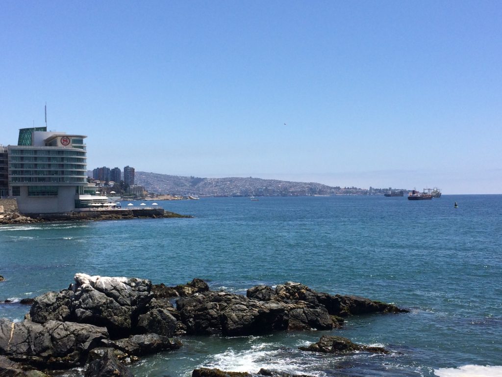 Widzimy Valparaiso (hiper zaludnione wzgórza po lewej), oraz parasole Sheratona (JALOUSIE mode on). To właśnie tutaj zauważyliśmy fokę