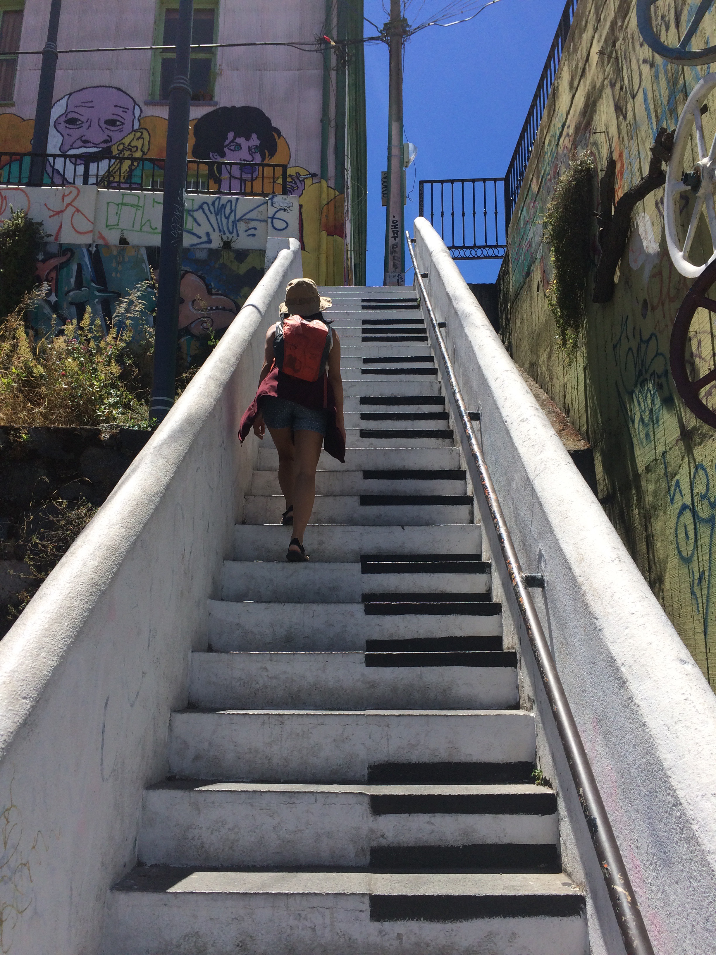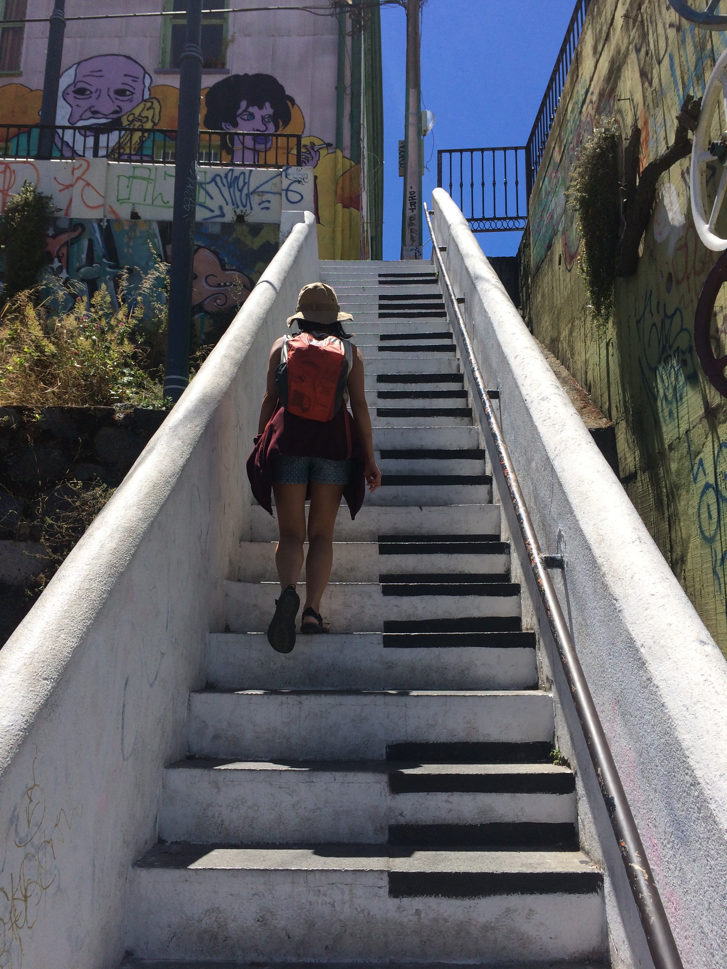 Po pożegnaniu się z sąsiadami (do których trochę się przywiązaliśmy po imprezie sylwestrowej) w Viña del Mar, wsiadamy w autobus do Valparaíso. Z powodu nieporozumienia z kierowcą autobusu, podrzuca nas na terminal autobusowy, a nie do katedry w Valparaíso. Musimy więc wziąć drugi autobus do katedry i wspiąć się po schodach do naszego hostelu