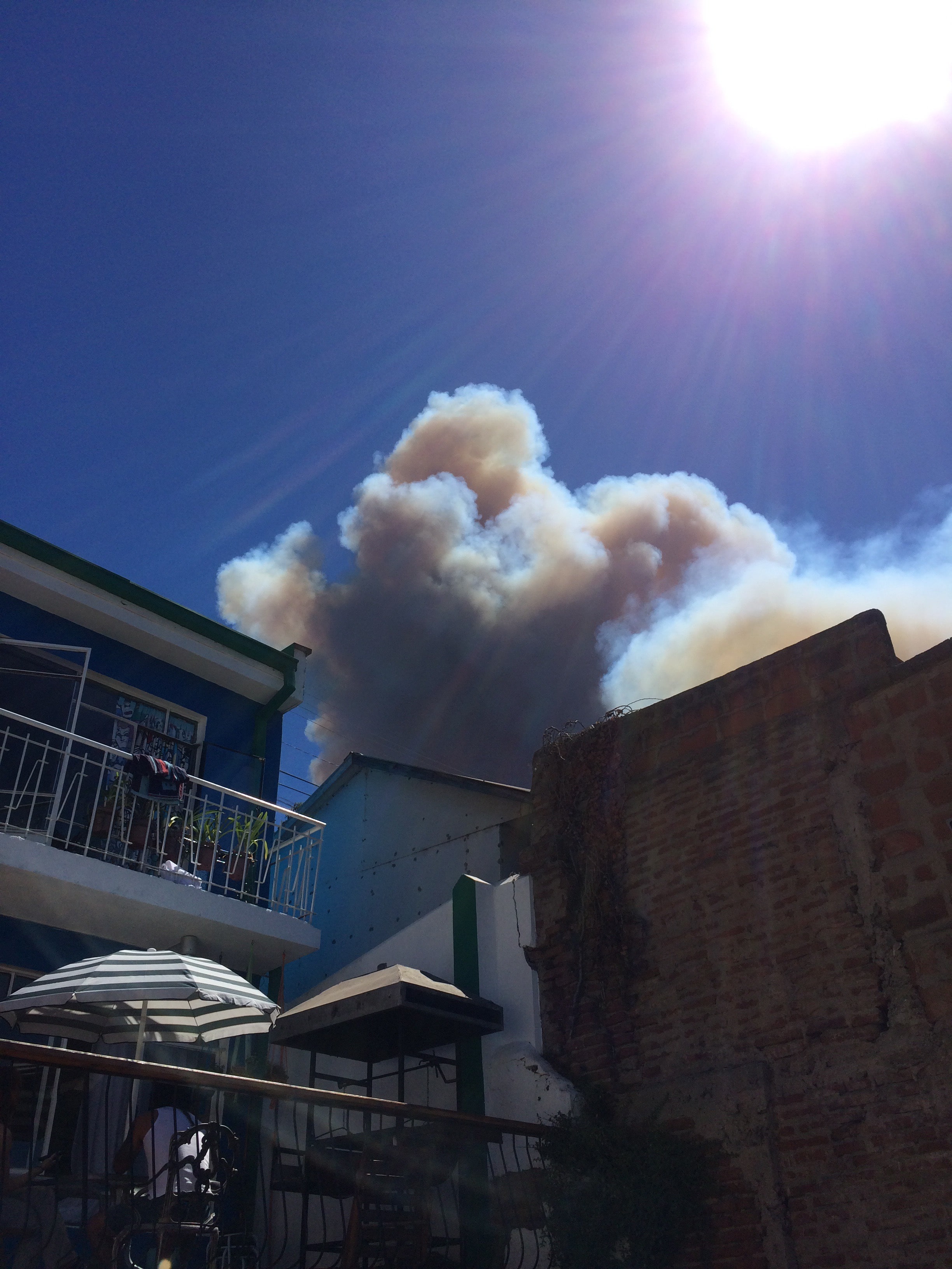 Wielki wiatr zaczyna omiatać miasto, postanawiamy wrócić do spokojnego odpoczynku na tarasie, gdy nagle, znikąd pojawia się wielki dym