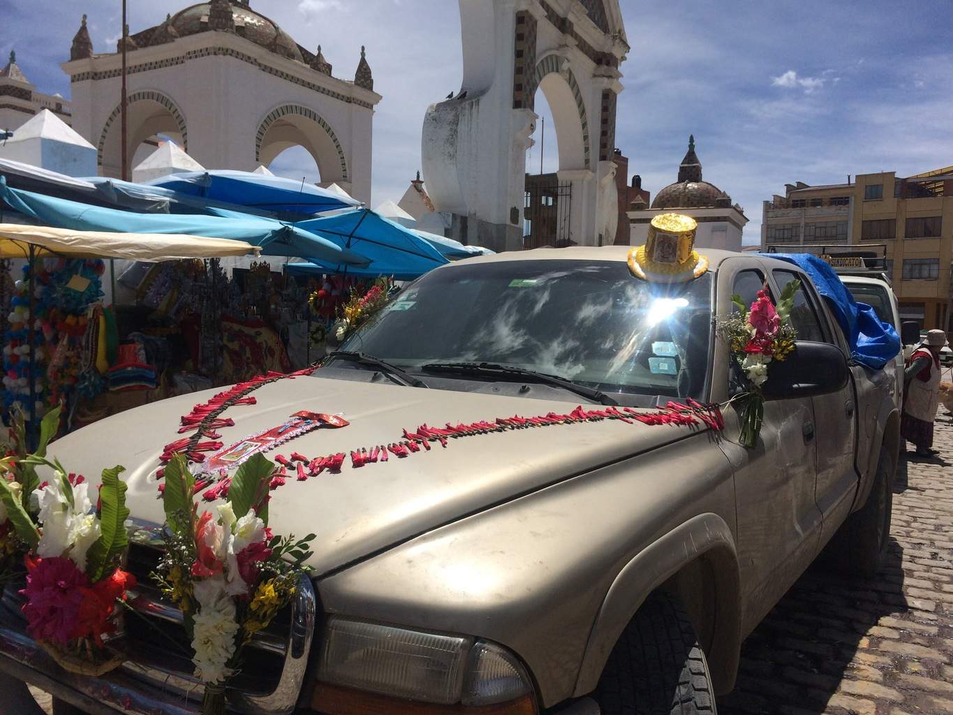 Ale miasto jest nie tylko turystyczne: mieści się w nim bardzo piękna biała bazylika ozdobiona ceramiką w stylu portugalskim. Wewnątrz znajduje się figura Matki Boskiej z Candelarii. Samochody (kiczowato udekorowane) przyjeżdżają tutaj, aby zostać pobłogosławione przez księży i w ten sposób na długo uniknąć wypadków. Pokazuję tu znalezione w Internecie zdjęcie wnętrza bazyliki (której nie wolno fotografować)
