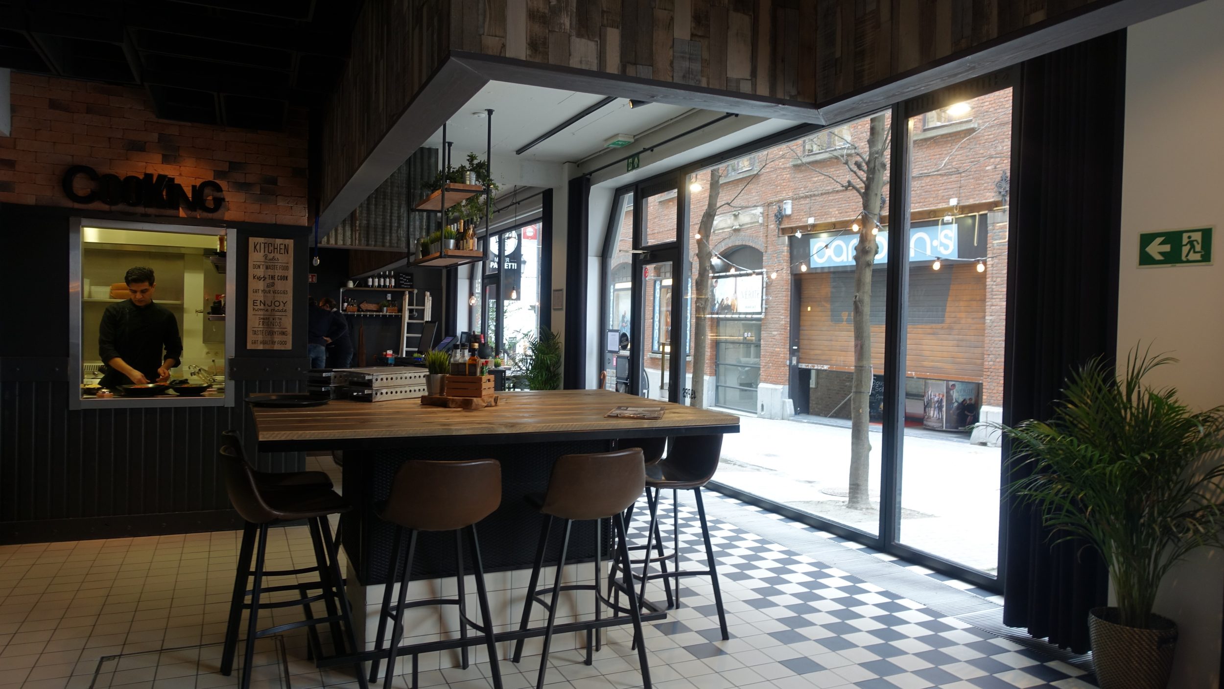 Pada deszcz, więc decydujemy się na łatwe wyjście: sklep z frytkami najbliżej naszego Airbnb został uznany za najlepszy w Antwerpii. Odkąd jesteśmy w Gandawie i Antwerpii, ludzie rozmawiają z nami tylko po flamandzku i wydają się nie chcieć już rozumieć francuskiego (nawet jeśli są dwujęzyczni). Początkowo zirytowani taką postawą, przełykamy naszą dumę i M. udaje się nawet złożyć zamówienie w całości po flamandzku – pod podziwiającym spojrzeniem syna i moim. Niestety doszło do nieporozumienia – bo nasz kochany sprzedawca niczego nam nie wyjaśnił i znaleźliśmy się z tacą absolutnie pysznych chipsów i tacą chipsów skąpanych w białym sosie i ketchupie :'( Smutek!!!