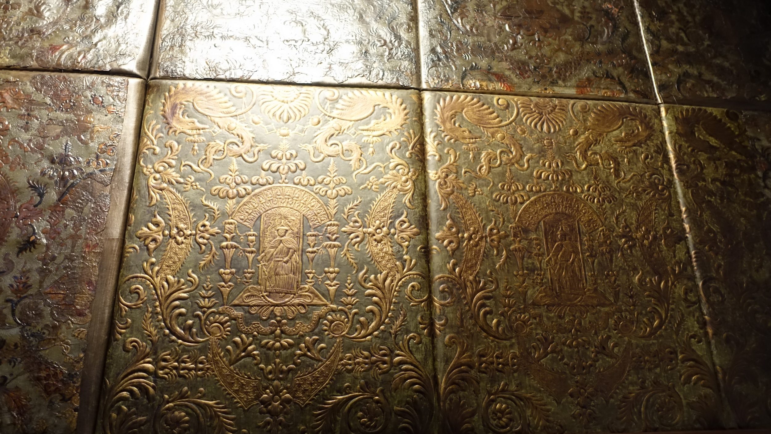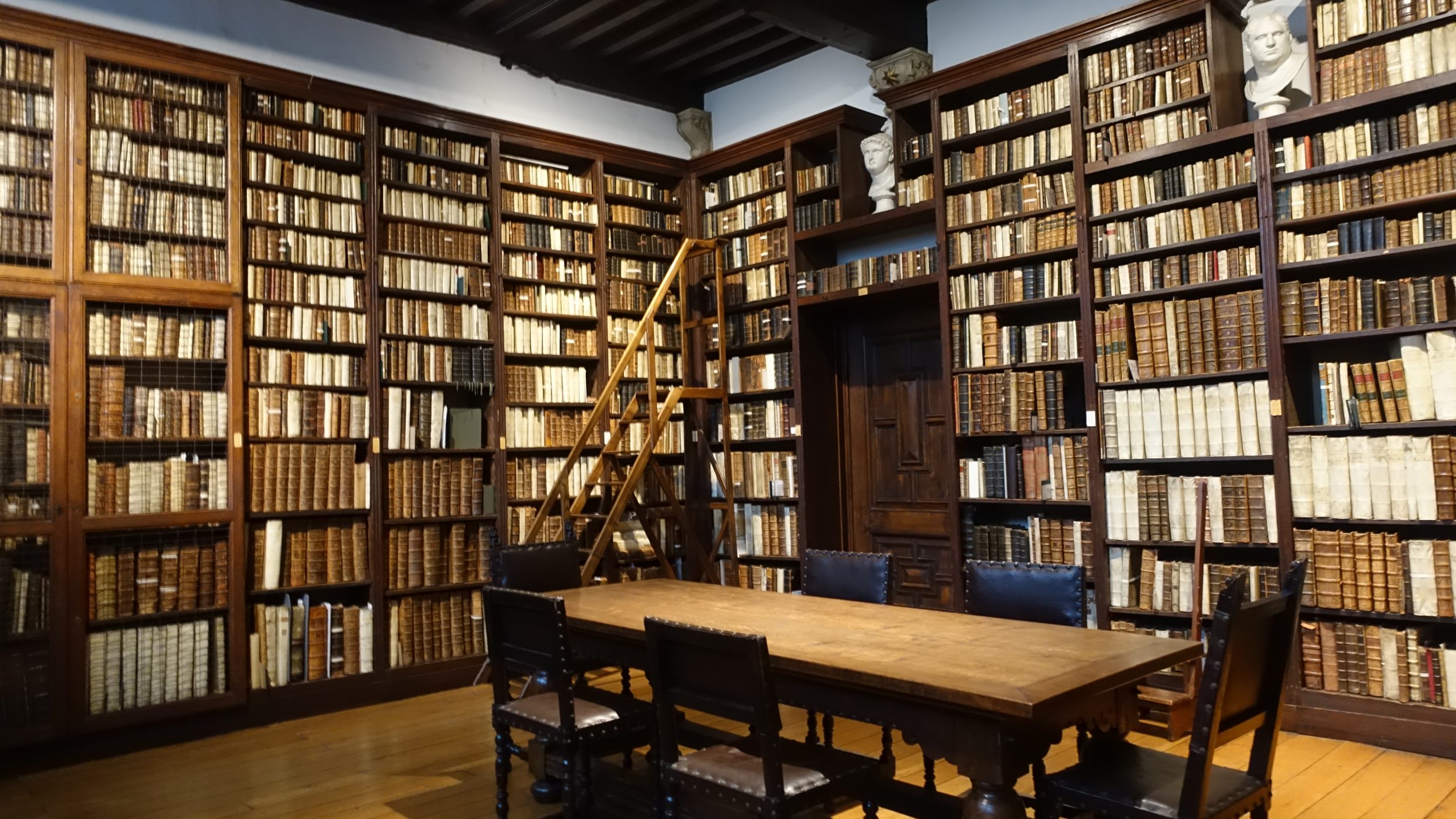 Wnętrze muzeum jest nieco ciemne, ale to dla ochrony ścian pokrytych absolutnie piękną skórą i starymi książkami.