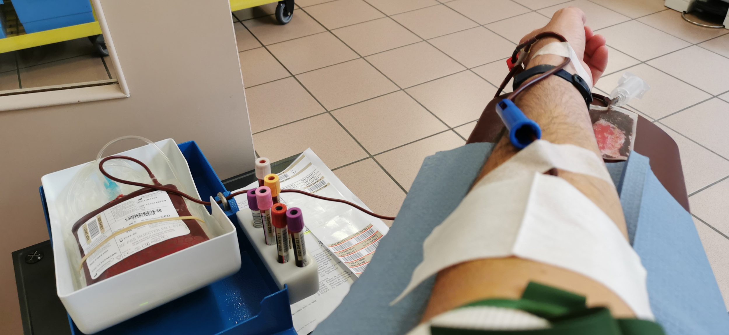 Z powodu choroby Covid liczba oddawanych krwi drastycznie spadła, a rezerwy krwi spadły poniżej progu alarmowego. Poszedłem więc oddać krew w pobliżu Rouen.