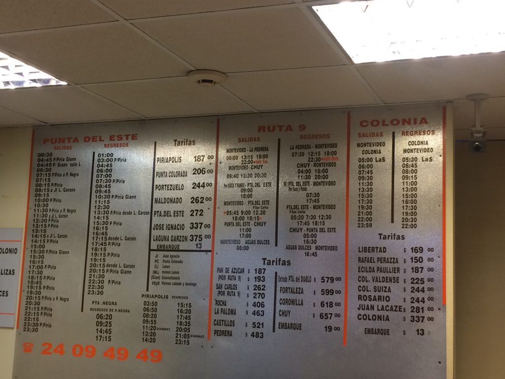 Autobus: godziny odjazdów/powrotów z Montevideo i ceny biletów (kliknij na obrazek, aby powiększyć)