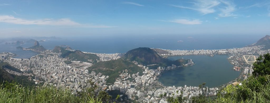 10 minut autobusem później, docieramy na szczyt góry i trzeba pokonać jeszcze kilka schodów, aby osiągnąć status Chrystusa. Ponieważ został on zaliczony przez niezależną firmę do 7 cudów świata, każdy przyjeżdża, aby go zobaczyć… i podziwiać tego typu krajobrazy (kliknij, aby powiększyć).