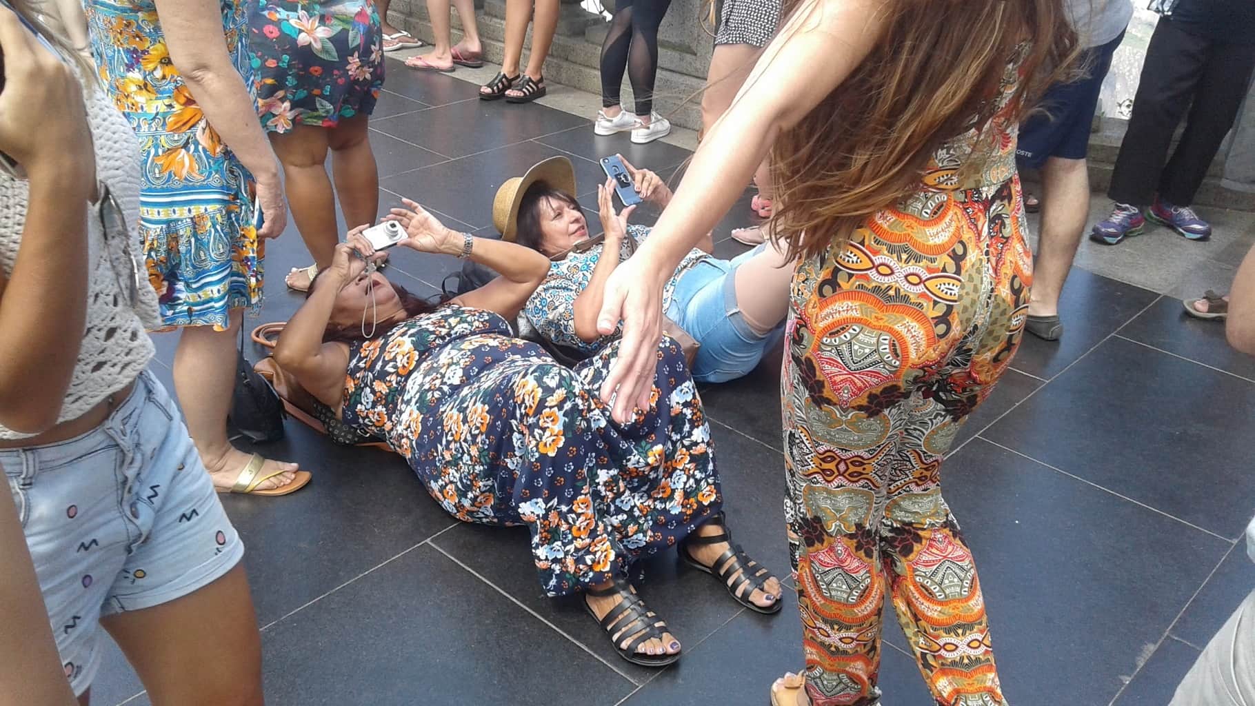 Czarny z ludźmi! Tak, na ziemi znajdują się maty do jogi, aby turyści mogli mieć najlepszy kąt do zrobienia sobie zdjęcia z Chrystusem. Niedorzeczne!