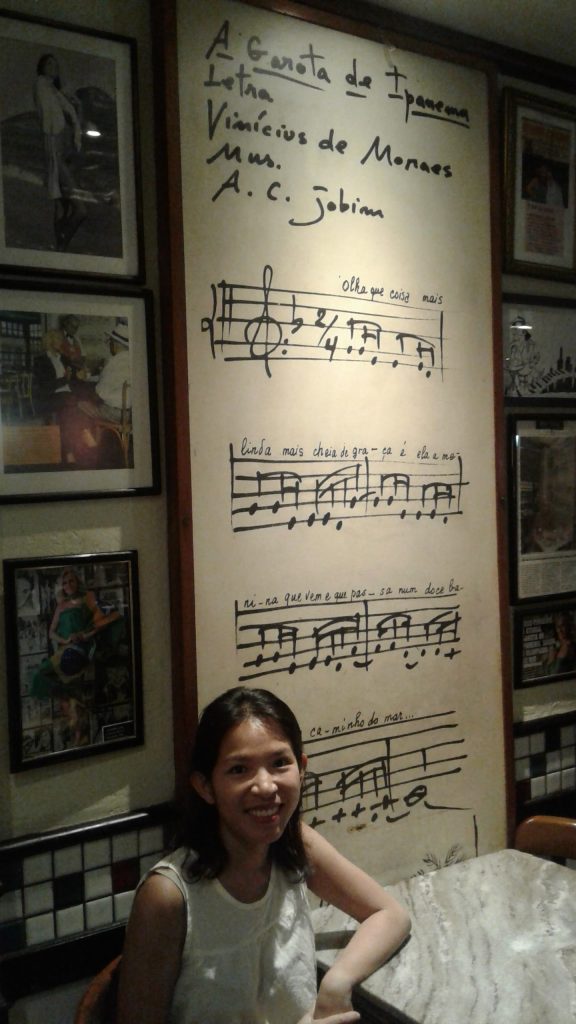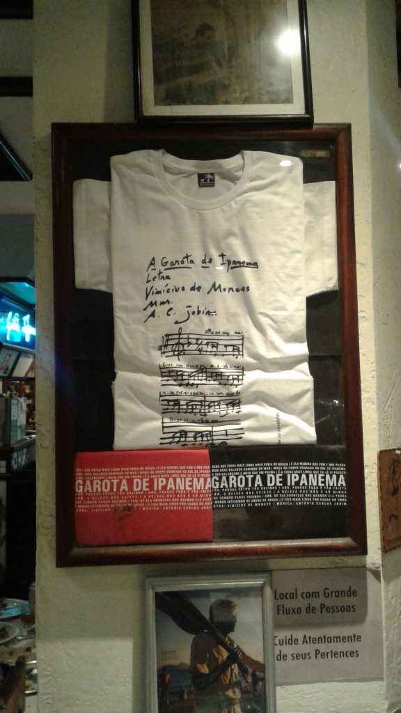 Więc poszedłem do tego baru-restauracji (bardzo przystępne ceny, tak przy okazji). Na ścianie znajduje się wiele wycinków z gazet, wynik i zdjęcie dziewczyny. Wielu ludzi przychodzi śpiewać „Garotę de Ipanema” przed restauracją, licząc na napiwek, ale śpiewają tak źle..