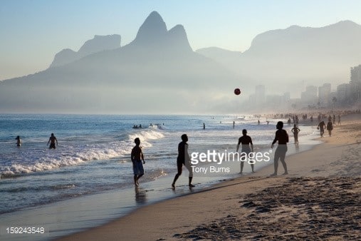 Plaża Copacabana nie jest stworzona do pływania: fale są o wiele za silne, a woda letnia lub nawet zimna. Lepiej rozumiem dlaczego Brazylijczycy jadą do Urugwaju, woda w Urugwaju jest trochę cieplejsza. W każdym razie, powiedziano mi, że miejscowi nie pływają, tylko przychodzą i moczą się przez kilka sekund, a potem odpoczywają na swoich krzesłach „obserwując ludzi”. Wrzucę tu zdjęcie z Getty Images, bo nie odważyliśmy się zbyt często wyciągać telefonu. W rzeczywistości wygląda to tak.