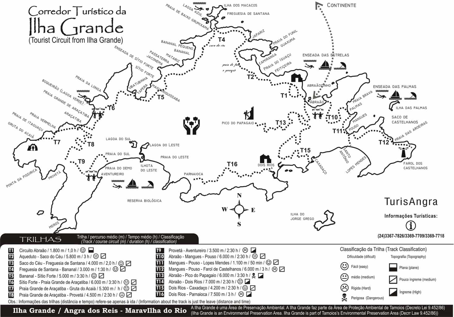 Oto wycieczki oferowane przez wszystkie agencje na Ilha Grande i ceny znalezione w marcu 2017