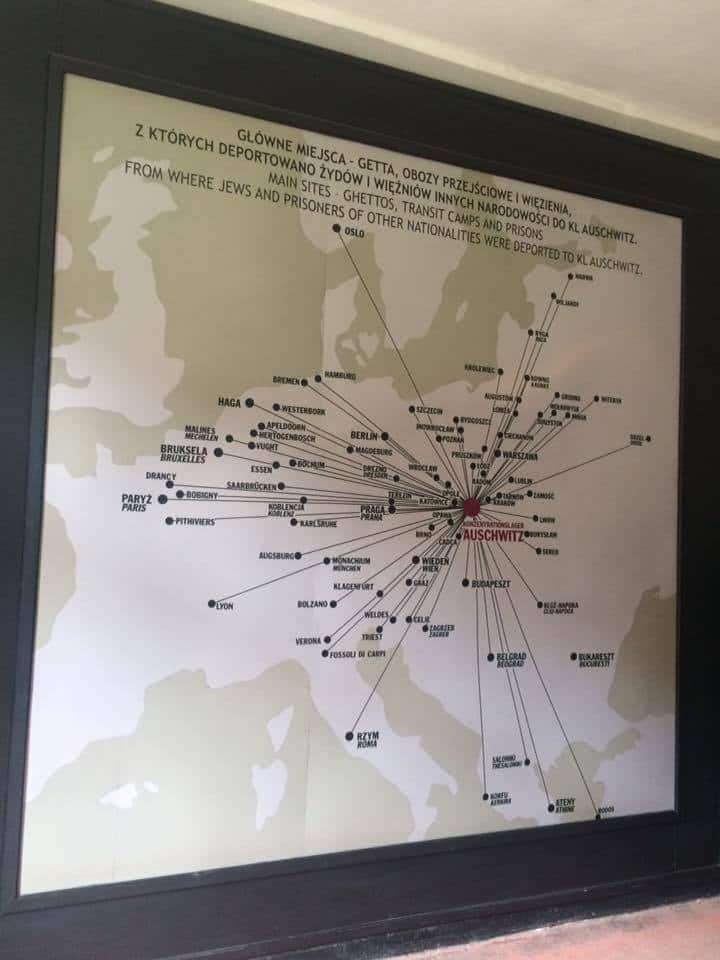 Wyjechaliśmy pociągiem z Krakowa i 1 godzinę i 40 minut później dotarliśmy na dworzec kolejowy w Oświęcimiu. Dwudziestominutowy spacer z dworca do obozu koncentracyjnego (obecnie muzeum) uświadamia nam, że obóz ten nie znajdował się na odludziu jak w naszych wyobrażeniach. Ale w środku miasta (teraz spokojnego). Co więcej, to właśnie ta bliskość z polskimi wioskami w okolicy umożliwiała więźniom przekazywanie tajnych wiadomości rewolucjonistom
