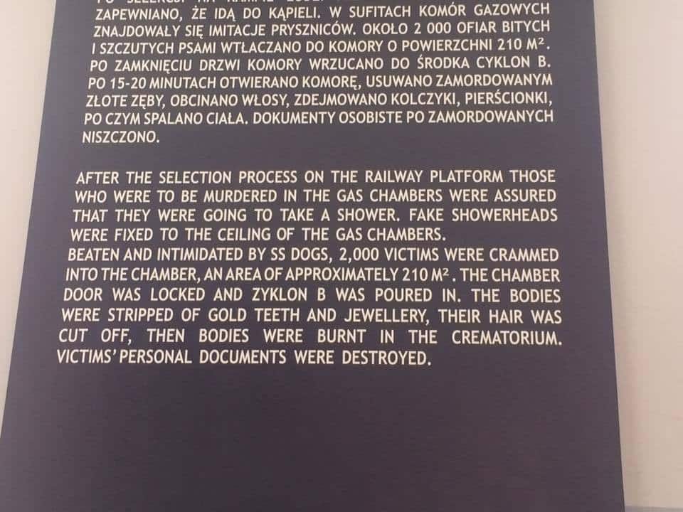 A na koniec zwiedzanie prawdziwej komory gazowej i krematorium odbudowanego z oryginalnych materiałów. Mogę powiedzieć, że wszyscy wyszli z czerwonymi oczami. Po 5 minutach zaproponowano nam, żebyśmy usiedli, a potem 10 minut przerwy, bo emocje były tak duże.