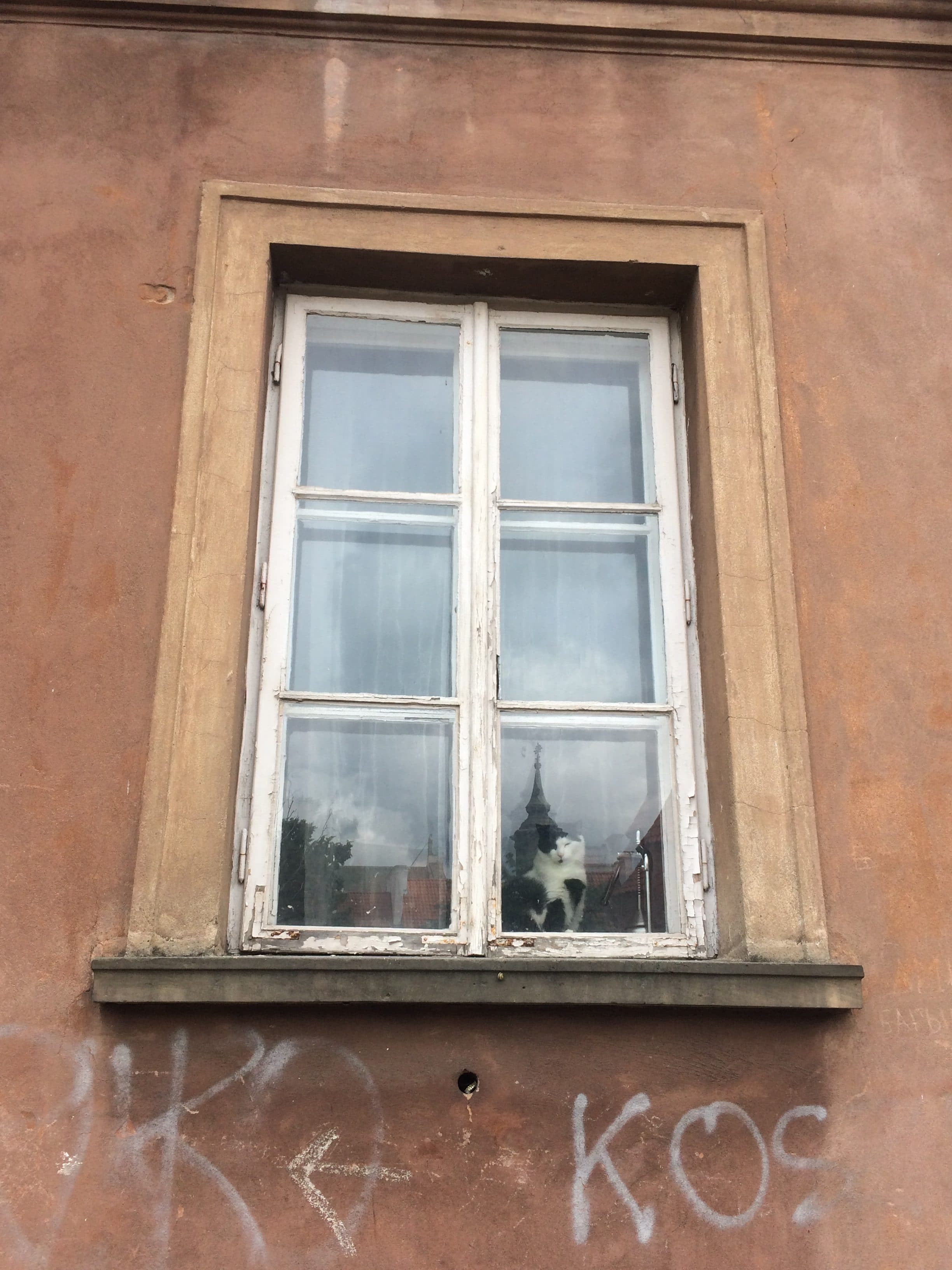 Tuż obok tego fortu, w oknie można zobaczyć kota, który obserwuje turystów