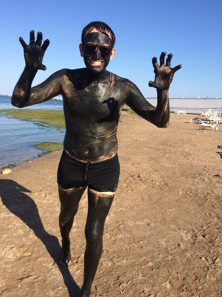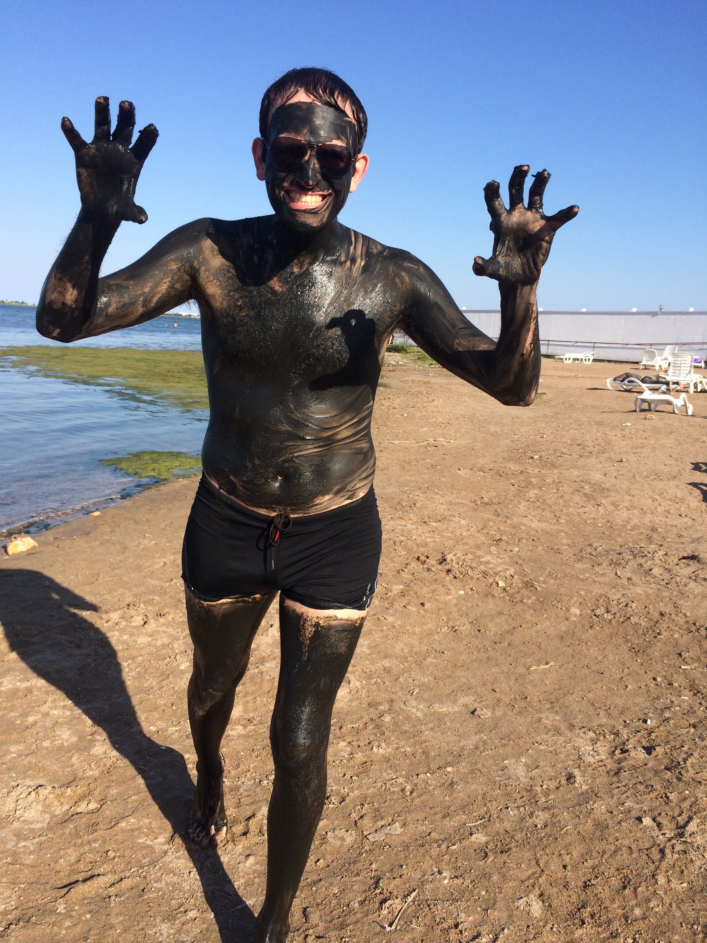 Dokładnie przestrzegamy instrukcji. JB nakłada błoto na całe swoje ciało. Trochę brzydko pachnie, więc nakładam go tylko na twarz… Pozostali klienci są również oblepieni błotem i suszą się na słońcu na stojąco. Od czasu do czasu widzimy stare pary, pokryte błotem, ramię w ramię idące w stronę jeziora i pomagające sobie nawzajem w pozbyciu się błota. Błoto zmywa się bardzo szybko i nie pozostawia śladów na kostiumach kąpielowych